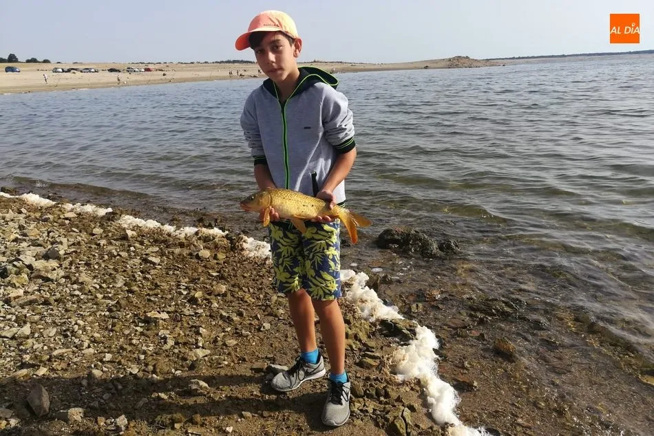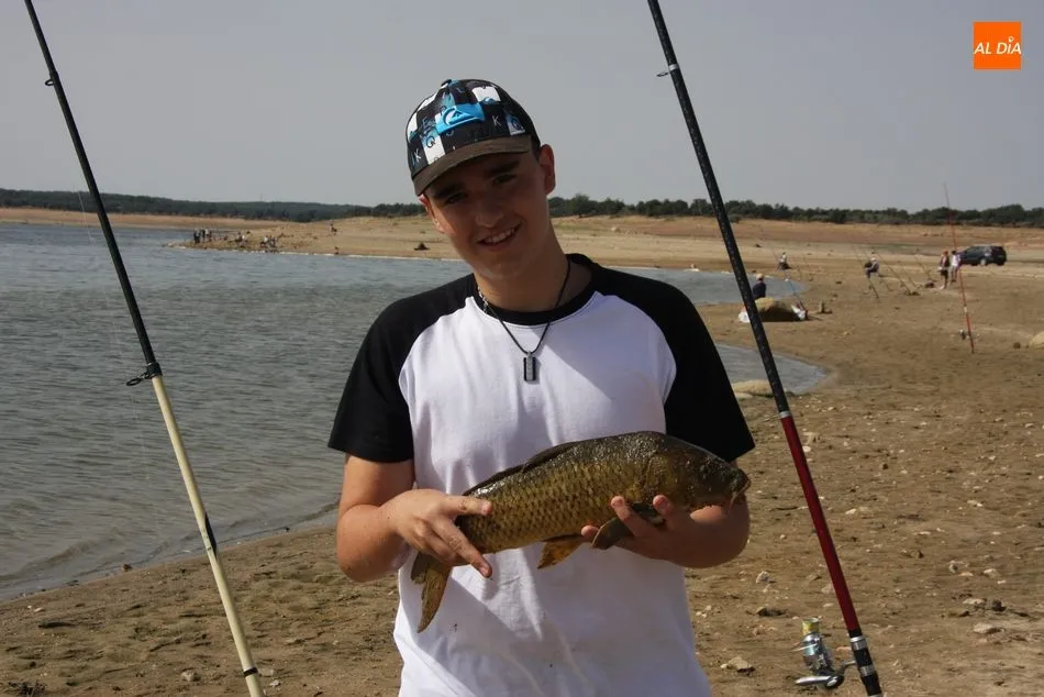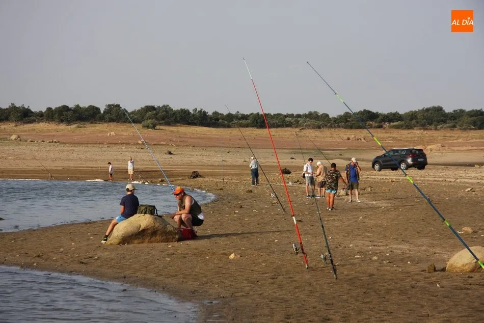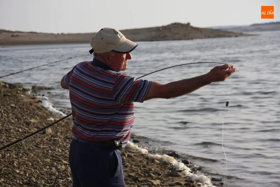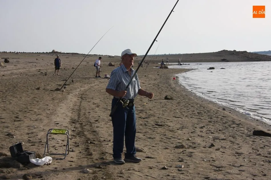 Nuevamente, el escenario de pesca sería la presa de Almendra. La salida se daba desde el teleclub a las ocho de la mañana, y la zona de pesca se situaría en la parte derecha de la carretera cortada por el embalse. Tal vez fuera por el calor de estos días o la escasez de agua, nunca los pescadores saben con certeza los motivos que empuja a los peces a comer unas veces y otras no, pero el caso es que con 40 cañas en el agua tan solo hubo cinco capturas, además de alguna rotura.