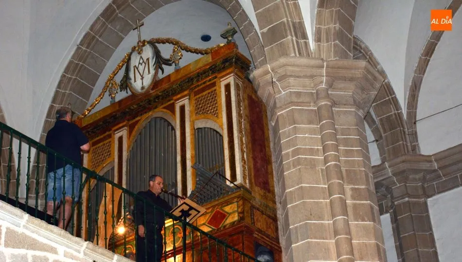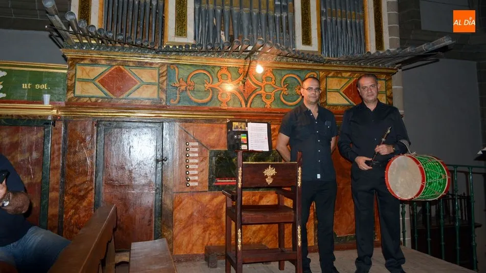 Por segundo año consecutivo, la iglesia de Nuestra Señora de la Asunción ha sido escenario de un gran concierto de órgano, gaita y tamboril, ofrecido por el organista Jose Manuel Gutierrez y el tamborilero Jose Ramón Cid. Una actuación que tiene como protagonista indispensable el magnífico órgano que se conserva en el templo parroquial de Lumbrales, un instrumento obra de Tomás Risueño que data de 1804.