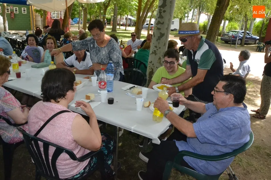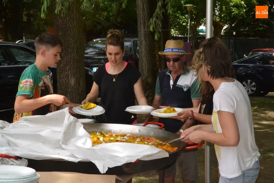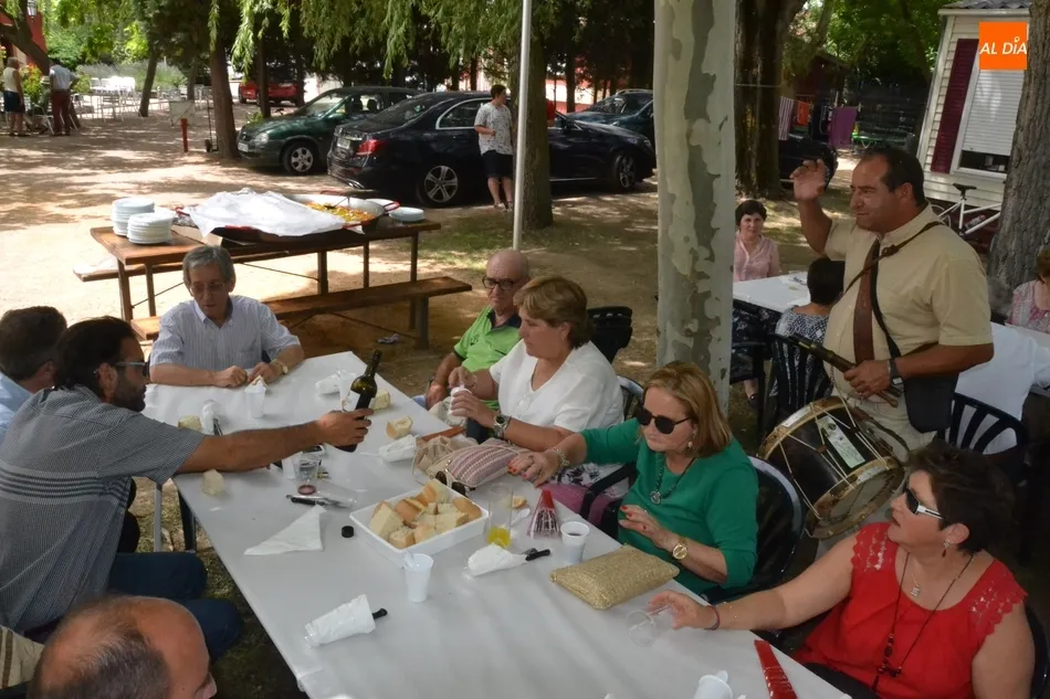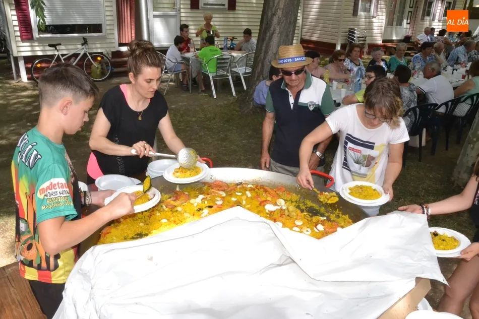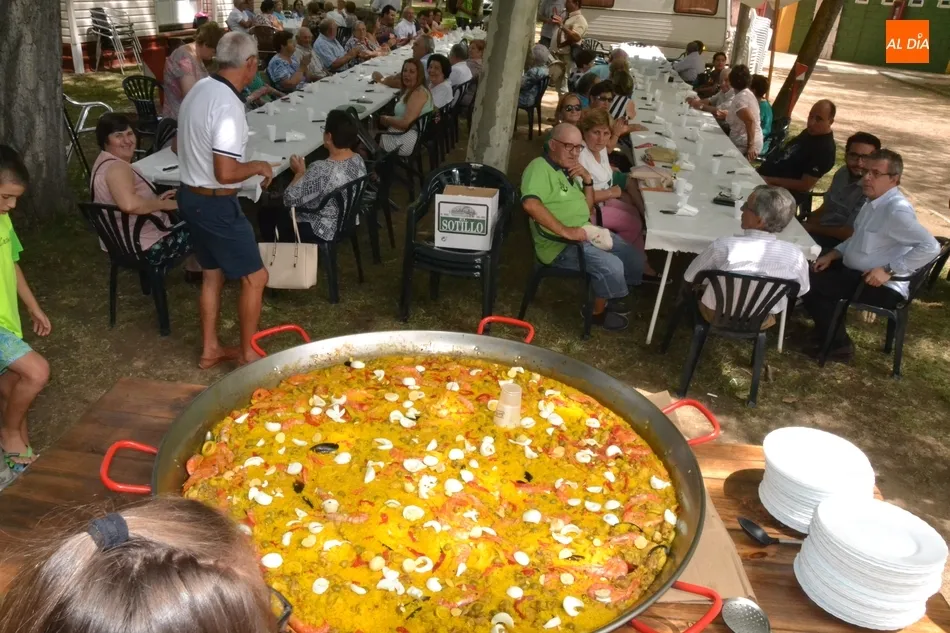 Concluida la misa, los vecinos se fueron dirigiendo poco a poco hasta el Camping Municipal, lugar escogido un año más para celebrar una comida conjunta a base de paella y cordero (concretamente se asaron 30 kilos de cordero). De forma previa a la comida (bendecida por Domingo Peinado), tuvo lugar una de las actividades clásicas de las fiestas de El Puente: una competición de sogatira, a la que se apuntaron personas de variadas edades.