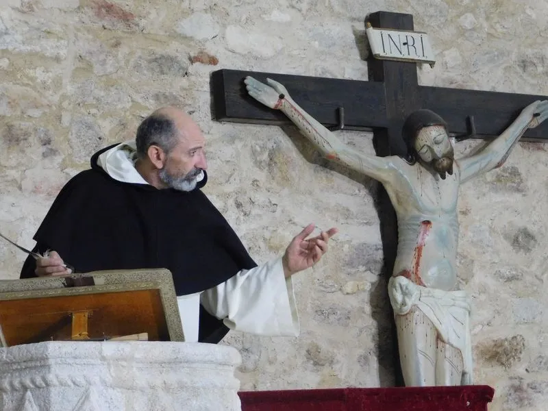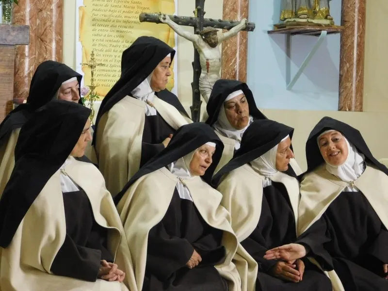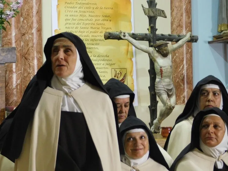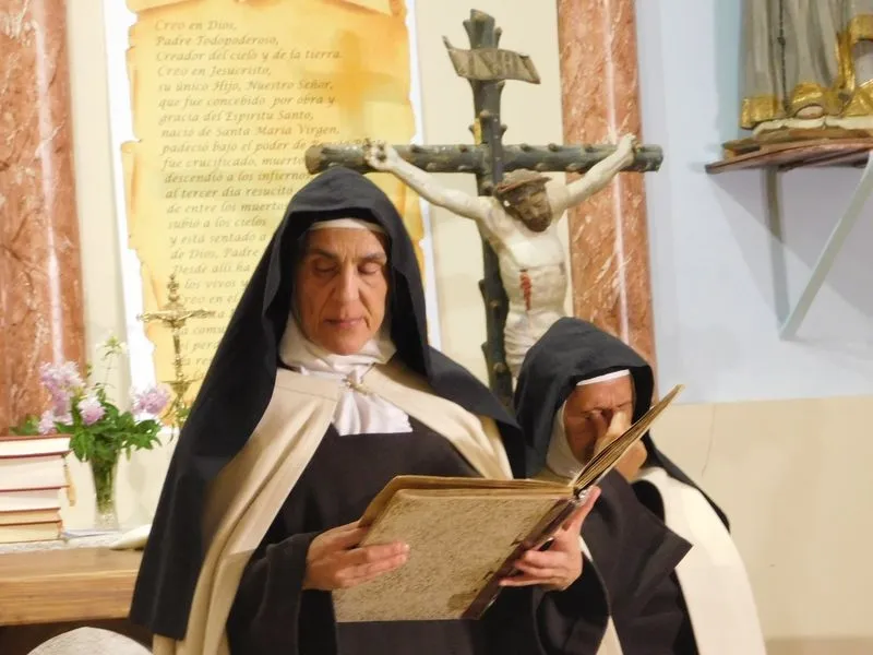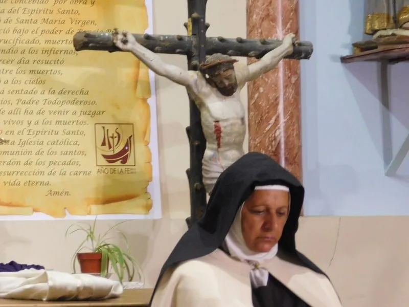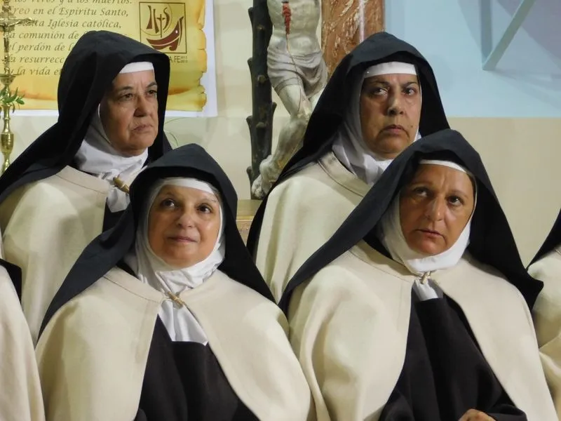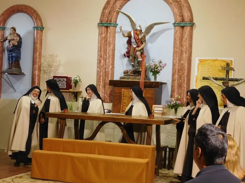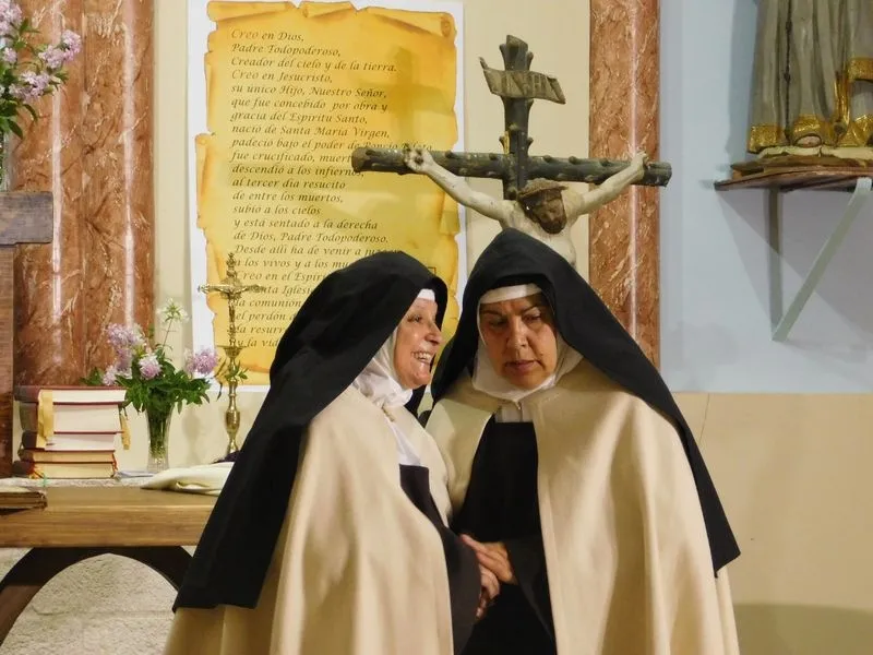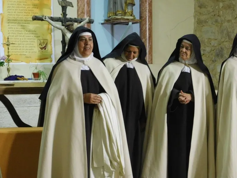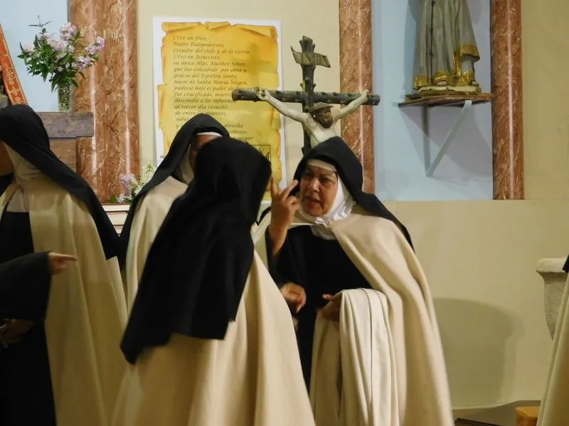 En la iglesia de Santiz, san Miguel Arcángel, defensor de las profundas creencias que a ultranza transmiten algunos privilegiados, presenció la batalla que dialécticamente entablan unas hermanas carmelitas ante el castillo-baluarte que presenta un púlpito en el que se atrincheran los argumentos retorcidos de La Inquisición, cuyo representante masculino simboliza a una sociedad llena de prejuicios y aspiraciones de poder entre muchos de sus miembros.