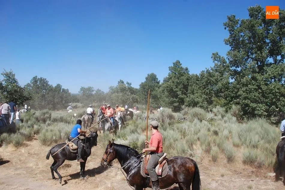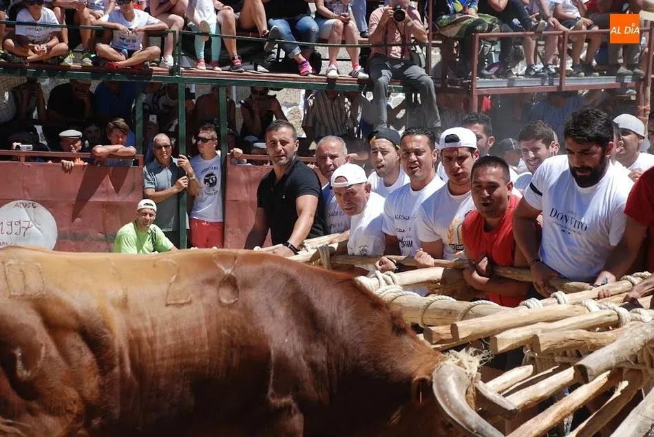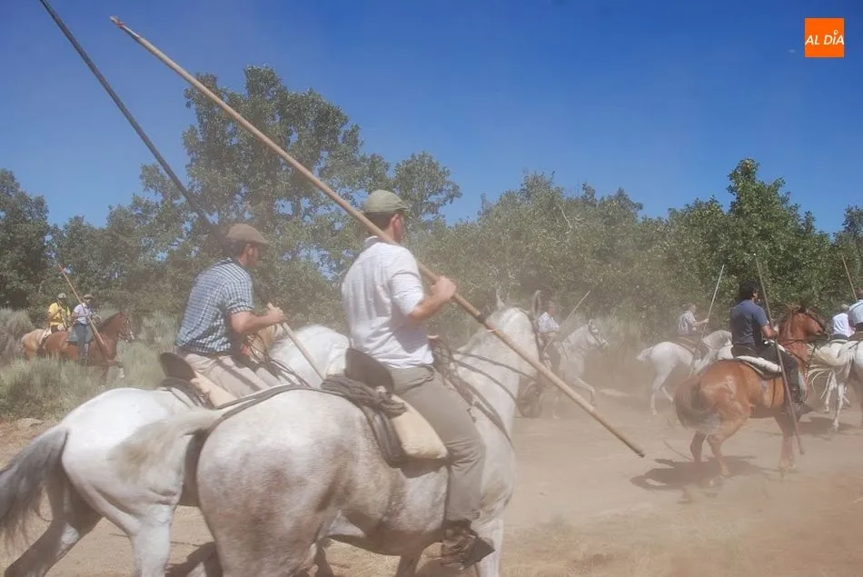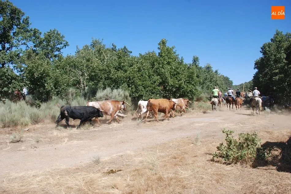 Cuando los caballistas consiguen llamar a los toros guiados por los cabestros, todos marchan hacia las calles del pueblo y entran en la plaza. Una vez ahí, los toros son conducidos hasta los toriles.