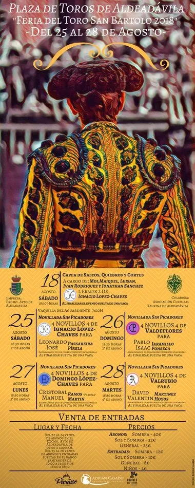 La recientemente configurada Asociación Cultural Taurina de Aldeadávila ha presentado con una mesa de coloquio los carteles oficiales para los eventos taurinos programados para las próximas fiestas en honor al patrón local, San Bartolomé, que tendrán lugar entre el 18 y el 28 de agosto.