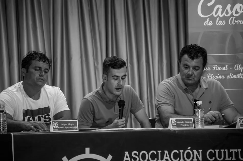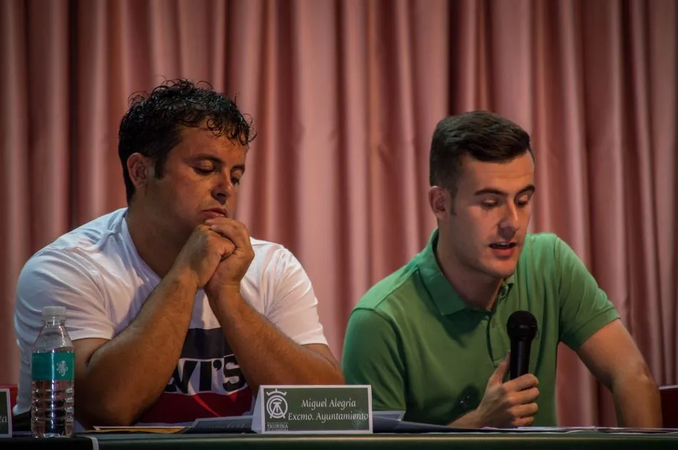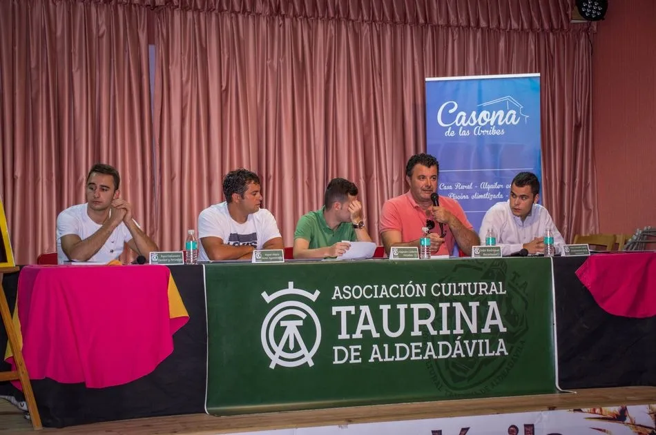 En la mesa de coloquio, -que dio pie a la presentación de los carteles-, estuvieron presentes Iván Rodríguez, recortador; Jaime González, vicepresidente de la asociación; Miguel Alegría, teniente de alcalde de la localidad y responsable de los festejos taurinos; y Paco Cañamero, afamado periodista y escritor que además presentó su último libro Tauromaquias de Castilla. Todo ello moderado por el periodista y vocal de la asociación, Alejandro Calderón.
