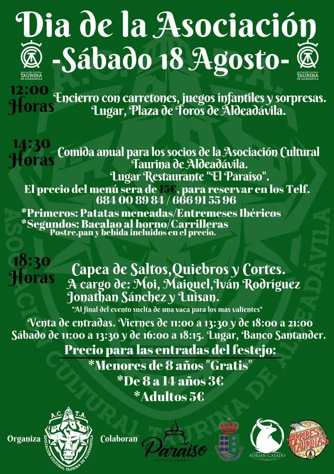 Entre los eventos presentados cabe destacar la ?fiesta de la asociación? que tendrá lugar el 18 de agosto, en una jornada festiva que abarcará todo el sábado de mañana a tarde con un encierro matinal con carretones para los más pequeños y valientes, una comida para todos los socios y una exhibición vespertina de saltos, quiebros y cortes con varios de los mejores recortadores a nivel provincial.