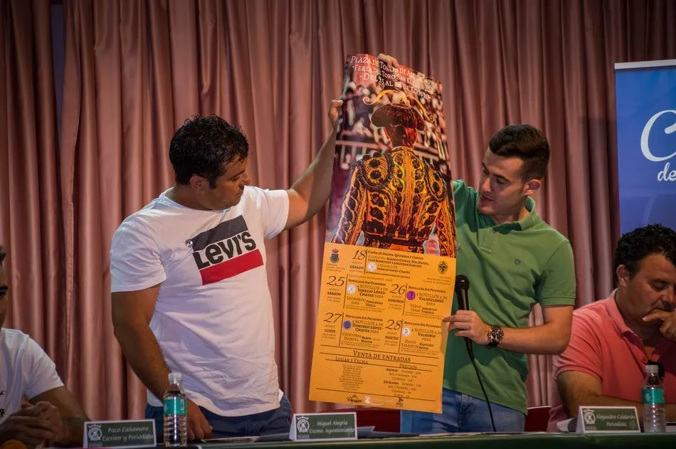 En el acto se expusieron los carteles de: la portada del libro de fiestas de este año; -realizada por Jonathan Hernández-, y también los carteles de los encierros, desenjaule, clase magistral de toreo de salón, feria taurina infantil, día de la asociación y por supuesto el cartel estrella, el de la Feria Taurina con el ciclo de novilladas sin picadores, todos ellos diseñados por el tesorero de la asociación y popular fotógrafo taurino, Adrián Casado.