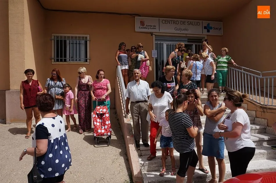 GUIJUELO | Medio centenar de personas se ha manifestado enfrente del centro de salud por la falta de pediatra y un médico de cabecera durante el verano