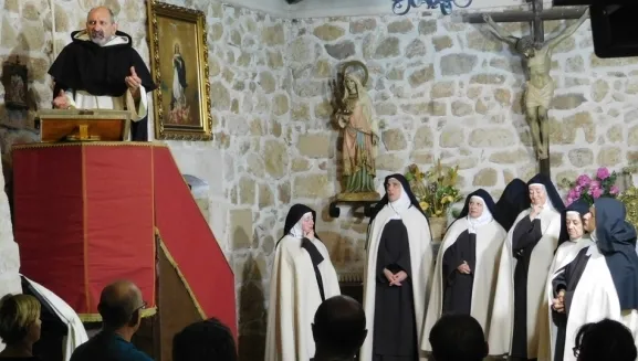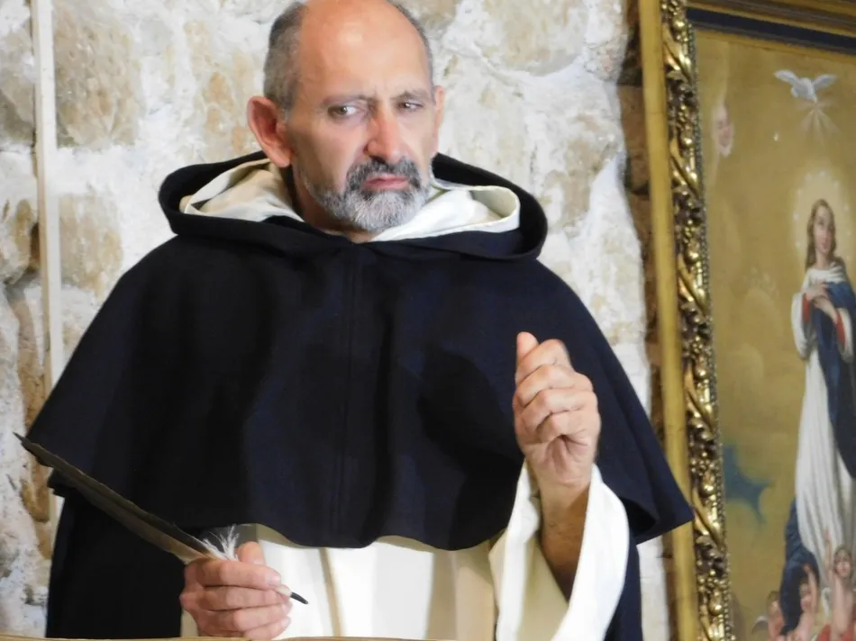 La historia narrada en la escena en la que ?Lazarillo de Tormes? convierte los altares de las iglesias, corre a cargo de un grupo de monjas carmelitas que frente a un dominico, defienden a ultranza, como valerosos soldados en una batalla, la figura de su maestra Teresa, a la que deben la mayor de las victorias: la libertad de elegir el camino de sus vidas. Los uniformes son hábitos de estameña; las armas utilizadas son las palabras que su madre les enseñara a hilvanar de forma tan valiente y magistral, y muchas de las de ella misma recogidas en sus poemas cartas o enseñanzas. El mapa por el que se mueven sus conquistas está lleno de las fundaciones de los nuevos conventos que la Reforma iniciada requería. Ante tanto despliegue, la Inquisición sospecha de estar ante un adversario desleal y traidor. Lo curioso es que la ideología es la misma: la creencia en un mismo Dios. Lo paradójico, es la actitud ante las batallas mundanas. Para Teresa y sus monjas todo se hace en función del servicio y amor que conduce a la libertad. Para la muy santa y elevada Iglesia Católica, prima la prepotencia del poder y dominio que en el mundo es pasajero y ficticio. La luz de la verdad frente a la de la hoguera.
