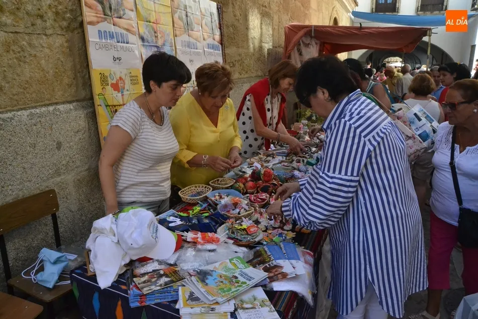 Como otros puestos solidarios, hubo stands de Manos Unidas, Comercio Justo o las Obras Misionales Pontificias. Además, también fueron ?solidarios? con todos los viandantes los numerosos puestos que ofrecieron alguna que otra vianda, en forma de raspas de queso, un trago de vino, o trocitos de los dulces de las Madres Carmelitas, que estuvieron a la venta en los soportales de la Plazuela del Buen Alcalde.