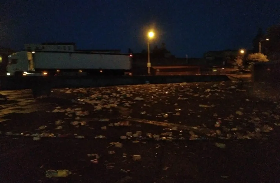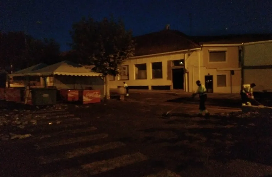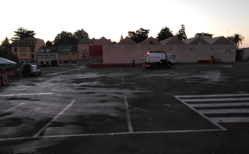 En este sentido, uno de los puntos donde se actuó en primer lugar fue el parking del Mercado de Abastos, para que éste recinto pudiese abrir sin problemas a primera hora de la mañana del miércoles. En primer lugar, los operarios de Urbaser recogieron toda la basura esparcida por el parking -la mayoría vasos y botellas de plástico y cristal- pasando por allí posteriormente el camión-cistierna para darle un gran manguerazo a todo el espacio.