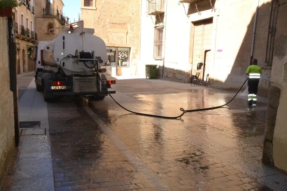 Ese mismo camión-cisterna tuvo una ajetreada mañana de miércoles, recorriendo las zonas del centro histórico donde mayor actividad hubo durante todo el Martes Mayor. Por ejemplo, en la galería se puede ver una imagen de su actuación a media mañana en la calle Madrid.