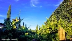 ?Los cipreses y parras bajo la luz celeste. Porque ahora los racimos de las uvas, bendecidos por el calor solar, se preparan para futuros días de cosechas...? (José Luis Puerto) / Foto de Ángeles Rebollo