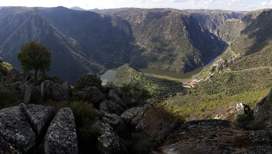 El Duero cuando era río, era el río más turbulento de Europa. Pero este Duero, bronco y tornadizo, está hoy apresado por un escalonamiento de embalses, abrevaderos de turbinas. Ha terminado el proceso de formación de Las Arribes. Ya no hay Derrizas.