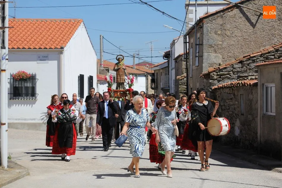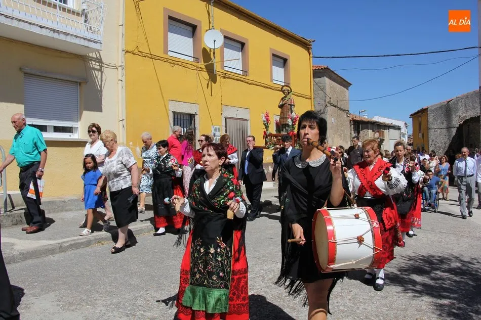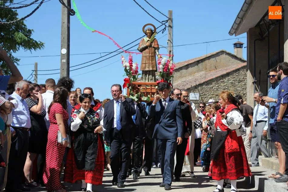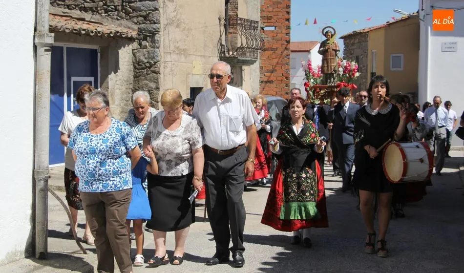 San Lorenzo recorre las calles de La Zarza de Pumareda bajos los sones de la gaita y el tamboril