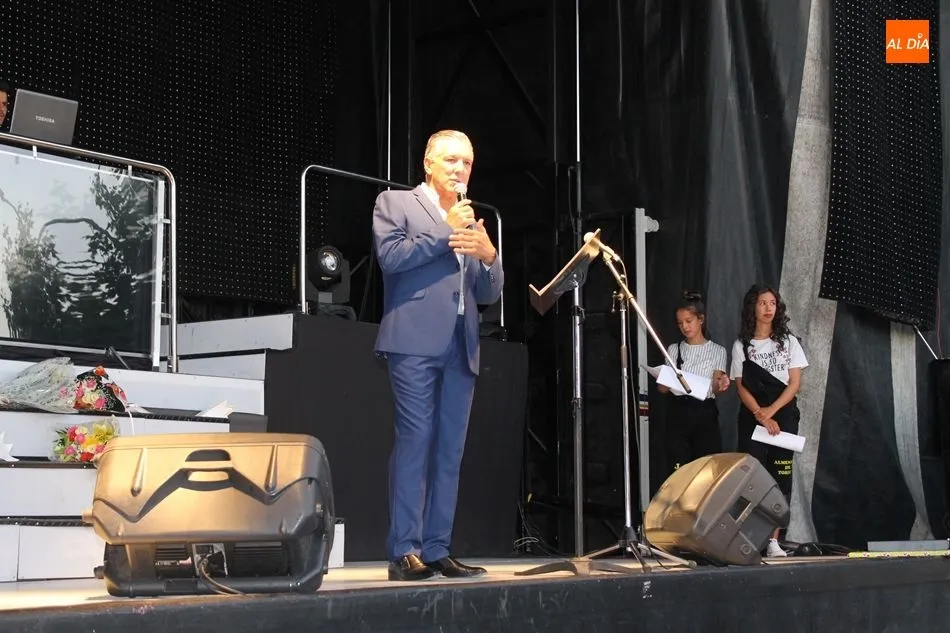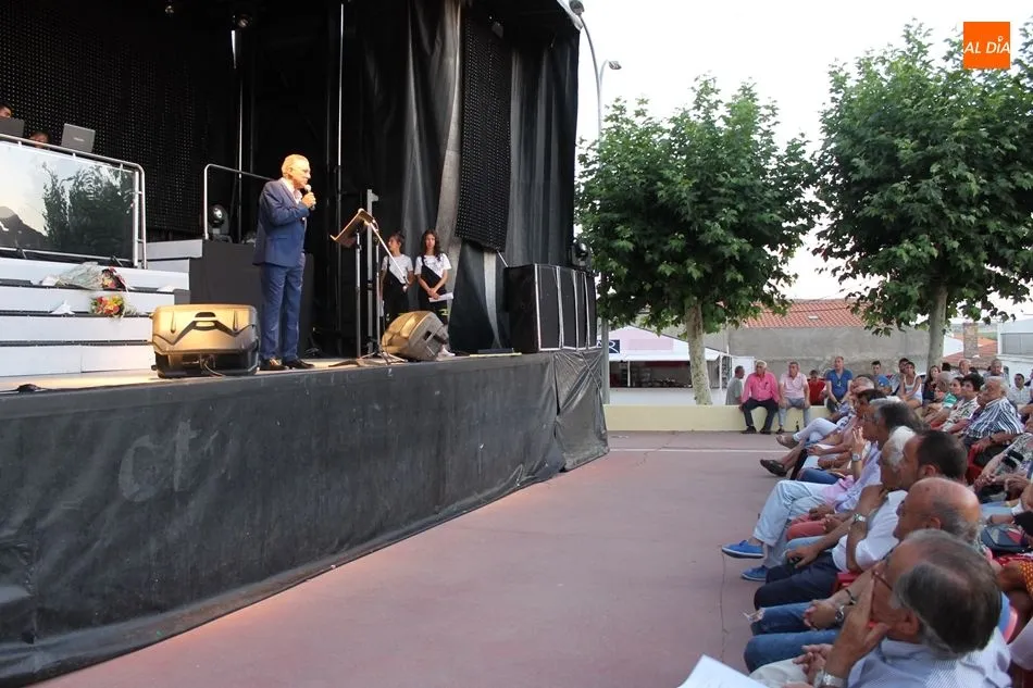 Concurrido pregón en Almenara de Tormes, con un ?pregonero de lujo?, Armando (Paco Santos). El conocido cantante se subió al escenario para ejercer de pregonero de las fiestas de uno de los municipios de la Ribera de Cañedo que han querido rendirle un merecido homenaje, antes de tomarse un ?año sabático? y en agradecimiento ?a los más de 20 años disfrutando de su trabajo? y por su colaboración con los pueblos de la provincia en eventos como la clásica San Silvestre, tal y como apuntó el alcalde de Almenara, José Luis López de Abienzo. Alcaldes de los municipios de la comarca (Valdelosa, San Pedro del Valle, San Pelayo, Valverdón, Zarapicos...) se han sumado a los numerosos asistentes al acto que ha tenido lugar en la plaza de Almenara de Tormes, pistoletazo de salida oficial a las fiestas patronales.
