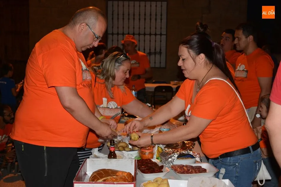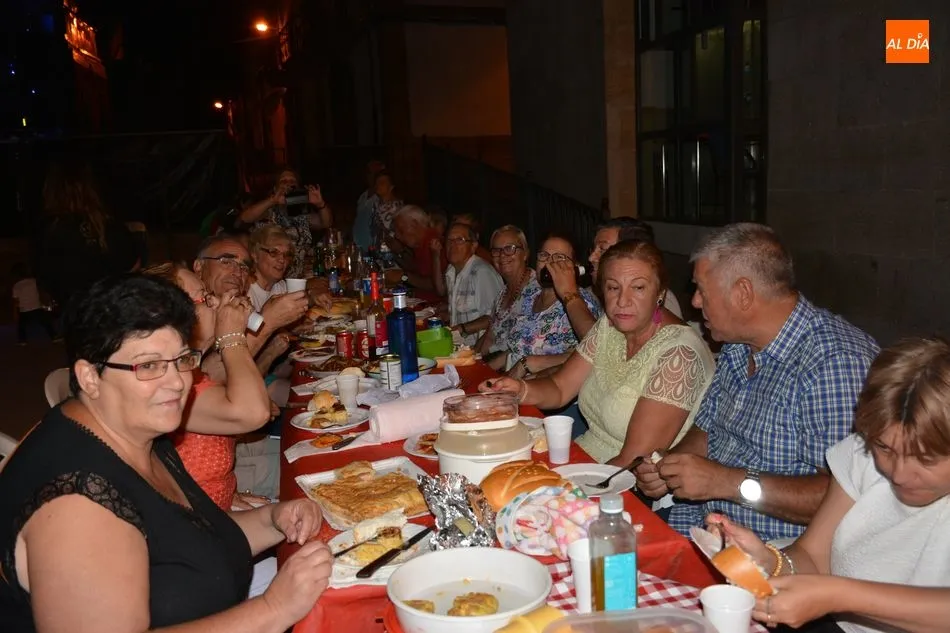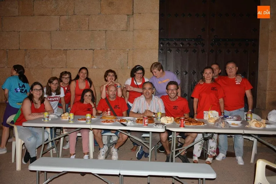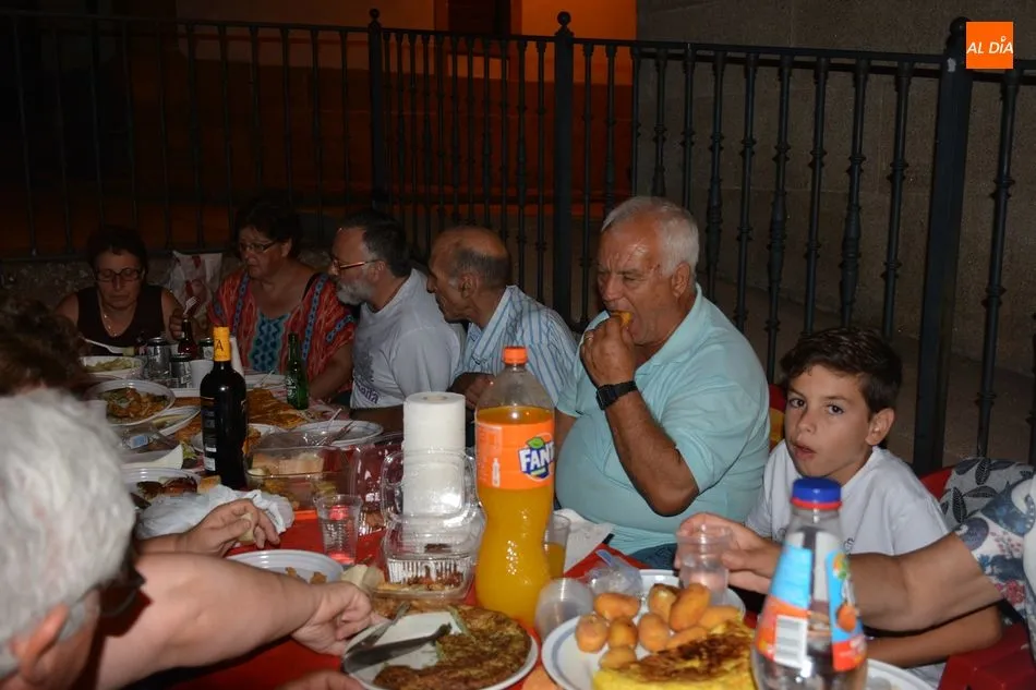 Vecinos de todas las edades se reunieron en torno a las mesas en el improvisado comedor al aire libre instalado en la Plaza Mayor del pueblo. Familias al completo, grupo de amigos y los miembros de las trece peñas de la localidad, dieron buena cuenta de las exquisitas viandas con predominio de los productos locales, como el queso, las empanadas y los hornazos, además de las tortillas de patata, asados de carne o paella.
