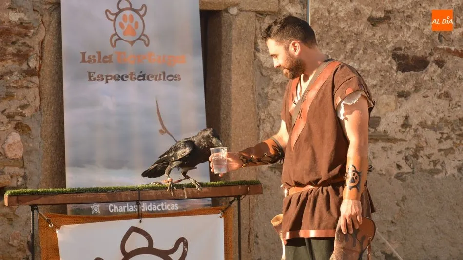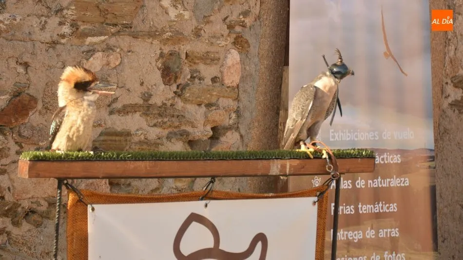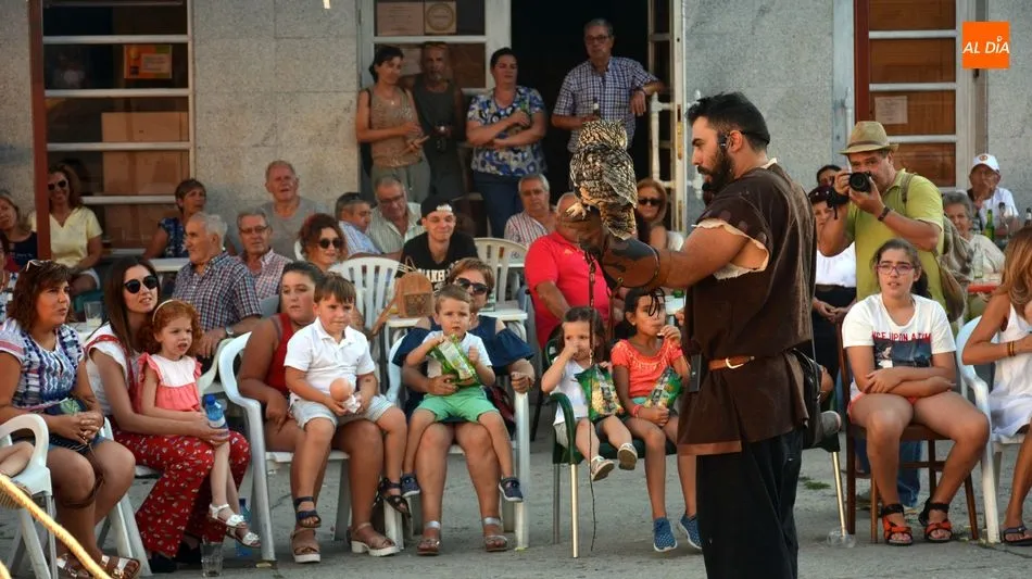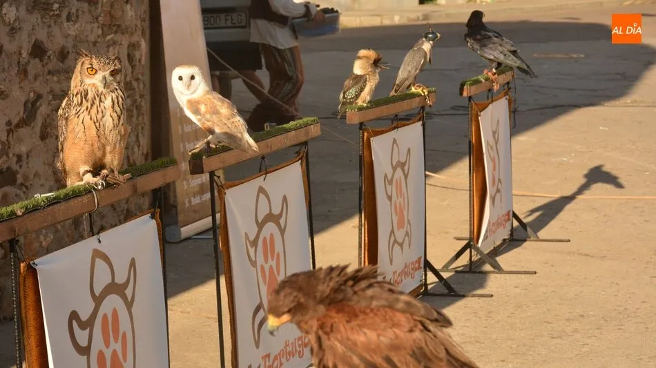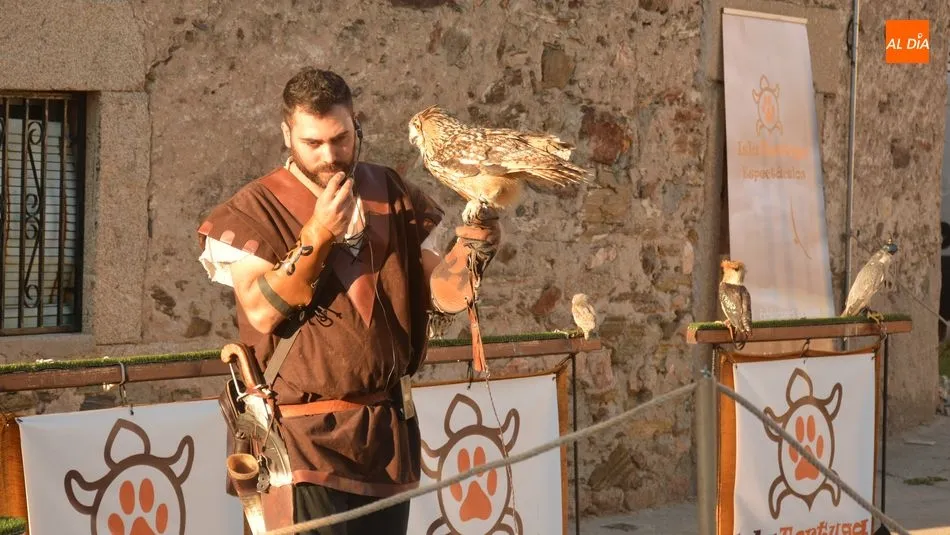 En la misma plaza tuvo lugar la exhibición de cetrería, con aves conocidas, como halcones, lechuzas y grajos, y otras especies más exóticas. Este espectáculo fue seguido con especial interés por los más pequeños, colocados en primera fila para no perderse ni un detalle de los movimientos de las aves.