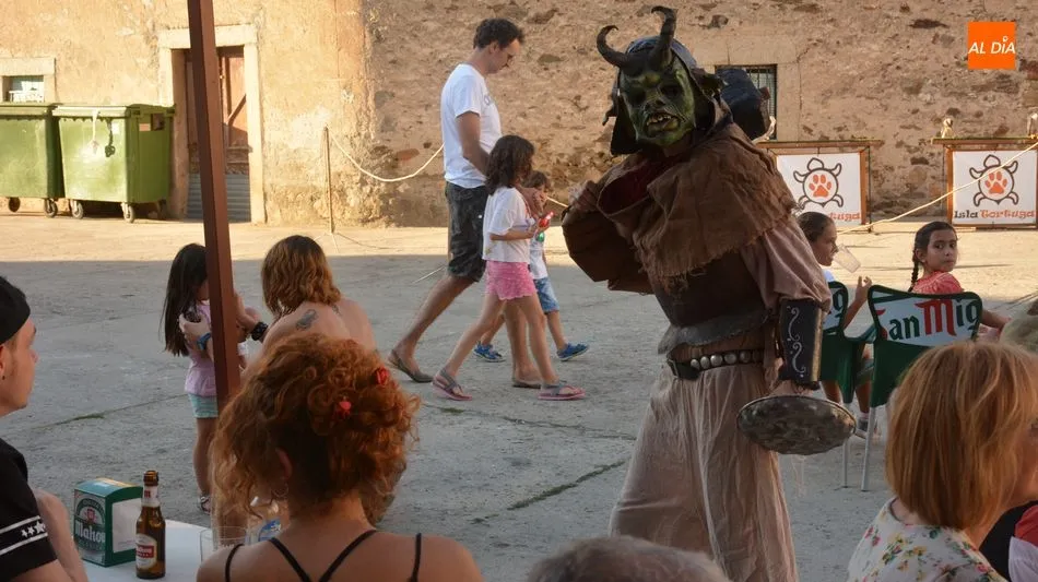Los caballeros volvieron a hacer un paseo a media tarde, acompañados de la música de los trovadores y también de la gaita y el tamboril de los tamborileros locales. El público congregado en la Plaza de la farola también pudo escuchar las historias contadas por los bufones y otros seres fantásticos.