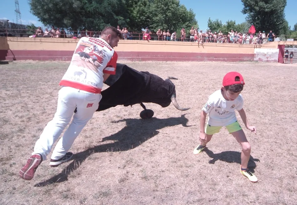Allí, se produjo la capea donde los niños disfrutaron libremente de los carretones y los toros hinchables, dando paso a continuación al primer concurso de recortes de Codemirsa, animándose los chavales a hacer recortes de todo tipo, desde quiebros a recortes de rodillas a saltos del Ángel. Finalizado este concurso, se llevó a cabo el desencierro, y acto seguido, una fiesta de la espuma, con aún más participación de chavales.