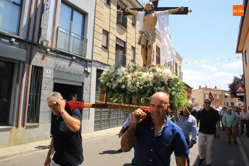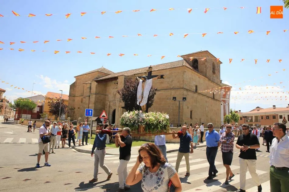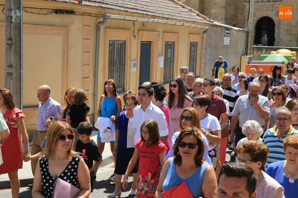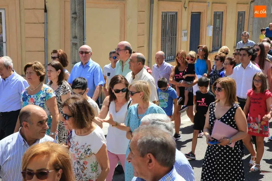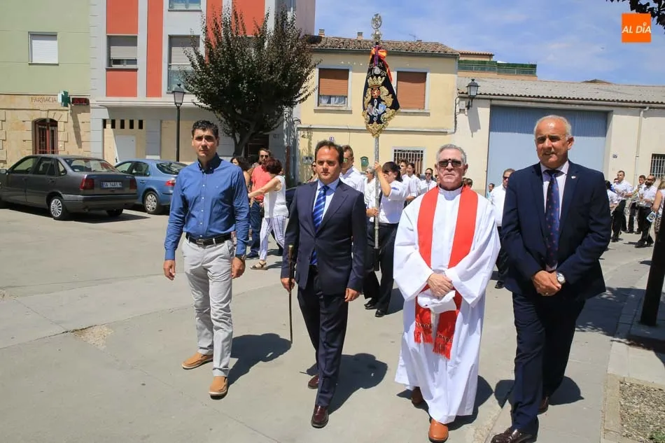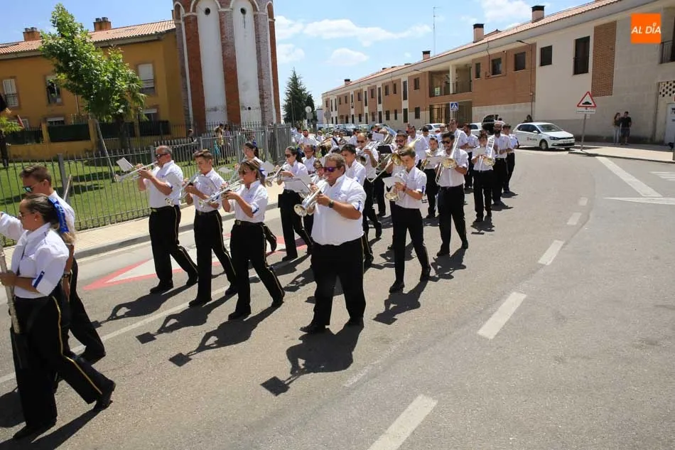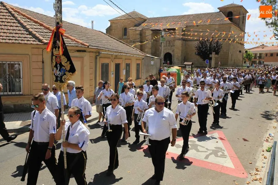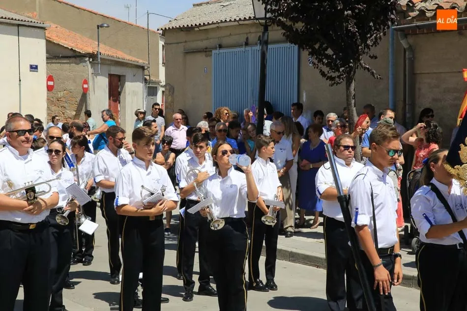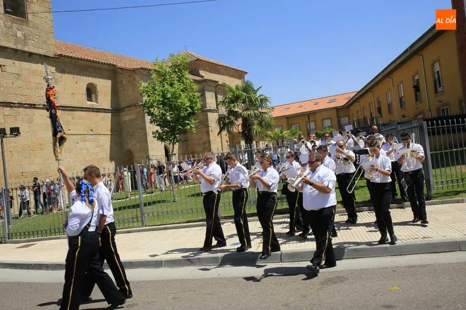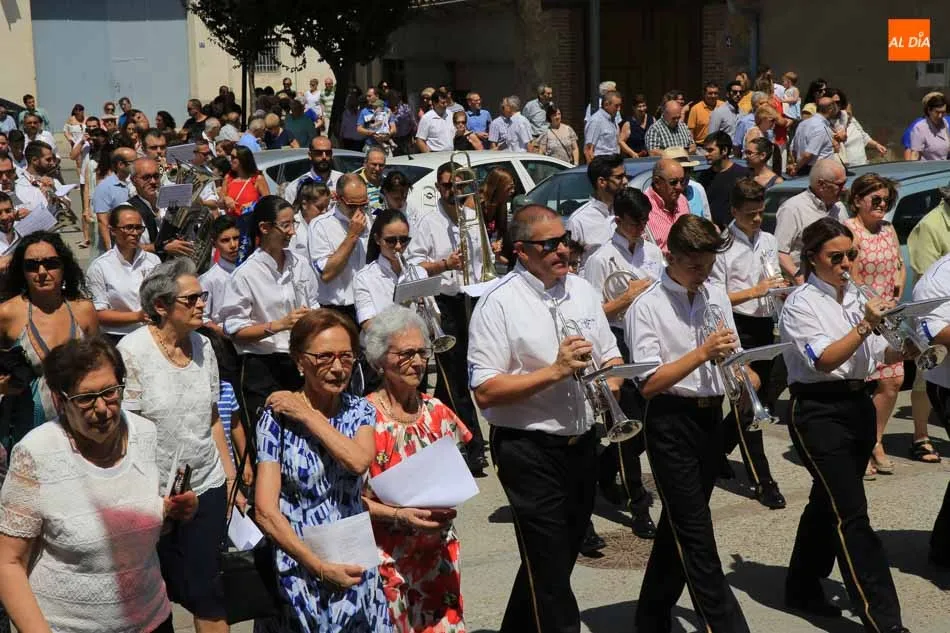 Tras la misa, los vecinos recorrieron las calles de la ciudad en una procesión amenizada por la Agrupación Virgen de la Vega