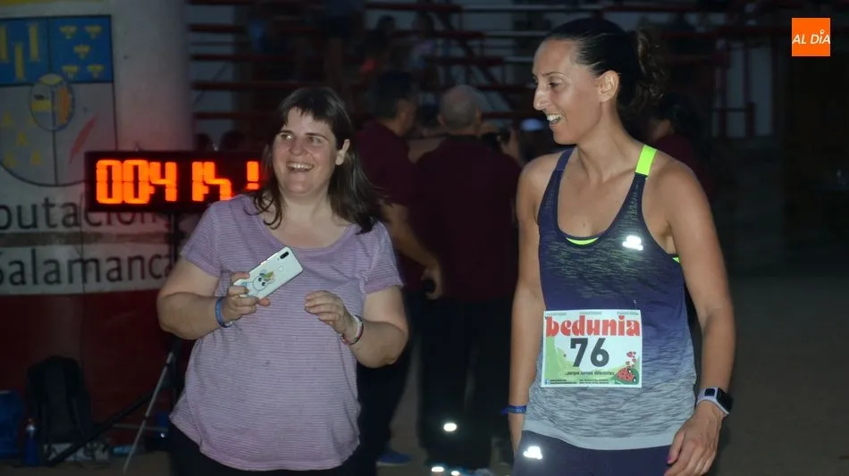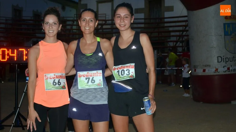 La primera mujer en entrar en meta fue Elena Herrero, de Embutidos Herrero de Lumbrales, que hizo el recorrido en 41minutos y 36 segundos, seguida por María Miguel del Corral, también de Lumbrales y Jessica García Bartol, de Vitigudino.