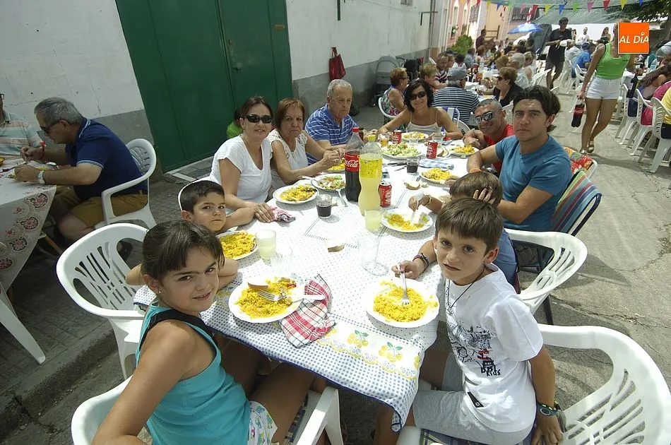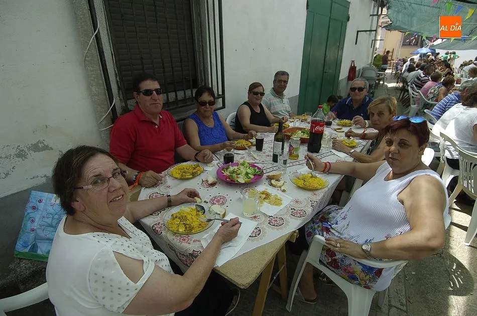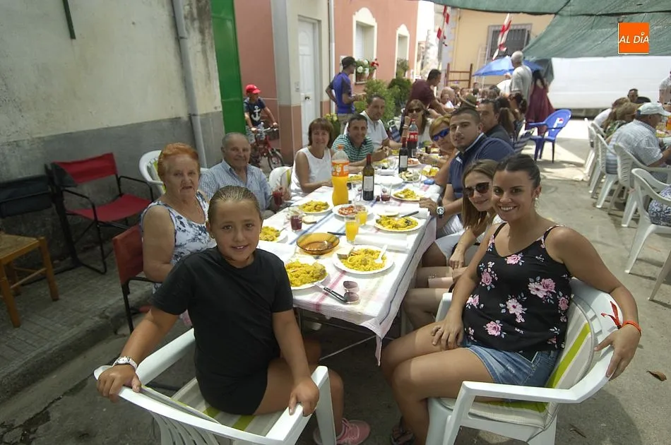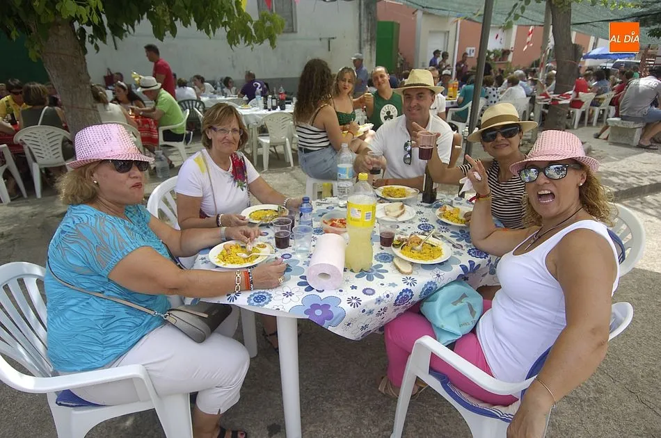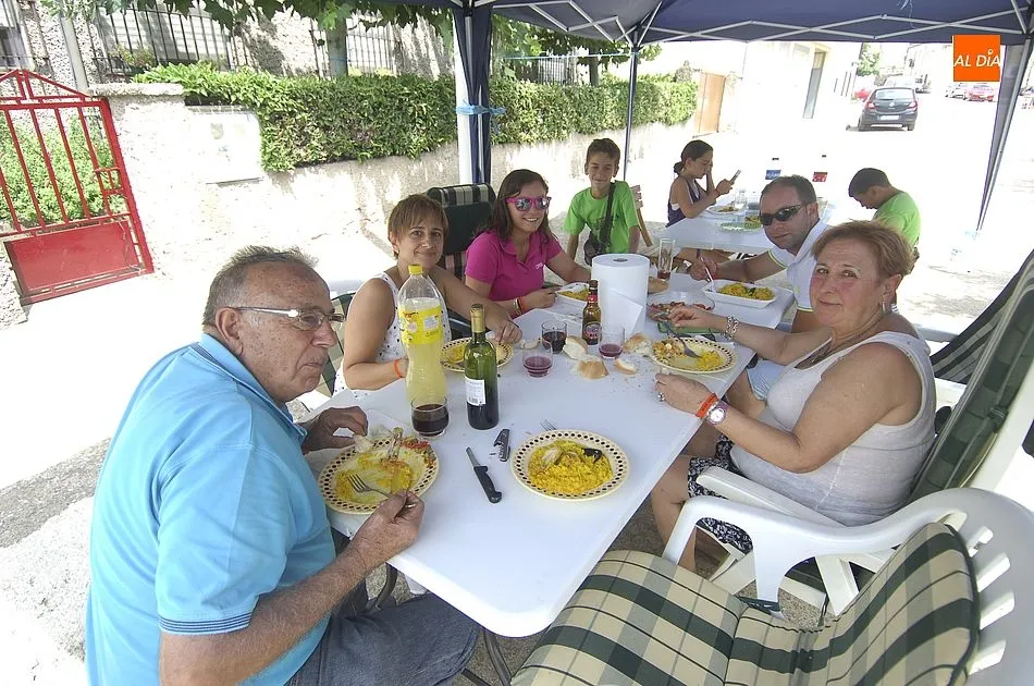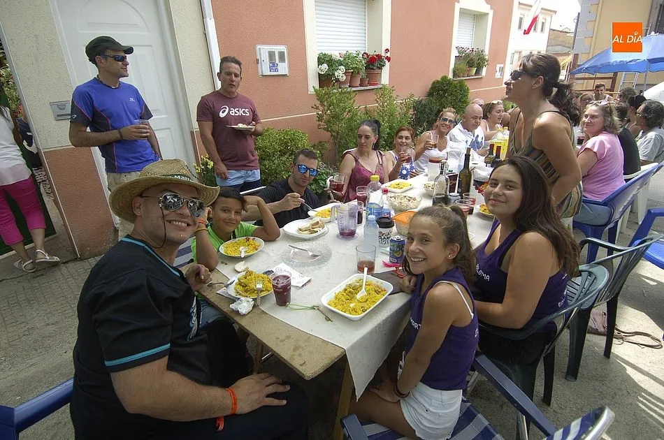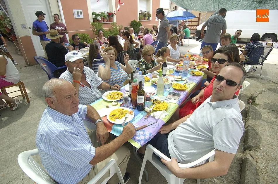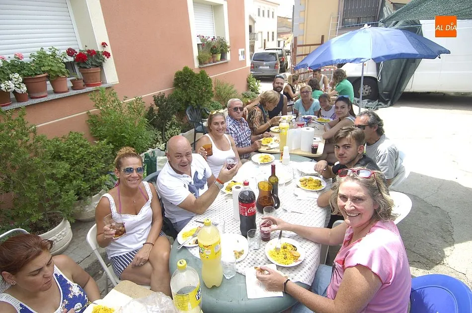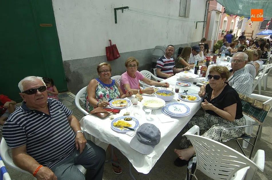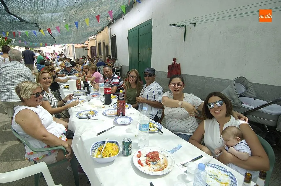 Concluida la capea, llegó la hora de comer, algo que todos los vecinos hicieron juntos en plena calle, con mesas y sillas colocadas lo más cerca posible entre sí, aunque buscando siempre la sombra. Los vecinos dieron buena cuenta en ese gran comedor al aire libre de la gran paella preparada en plena calle por el chef José Luis Benito y su equipo.