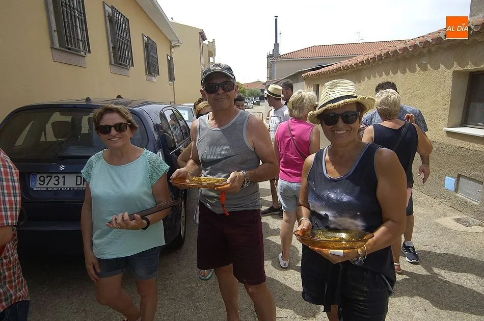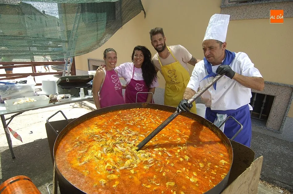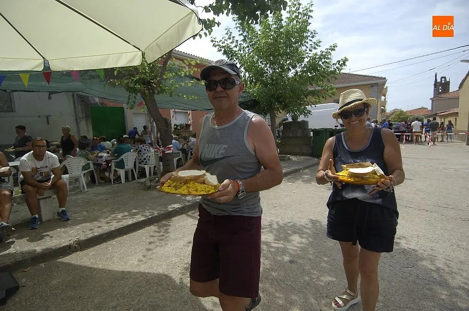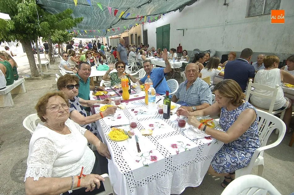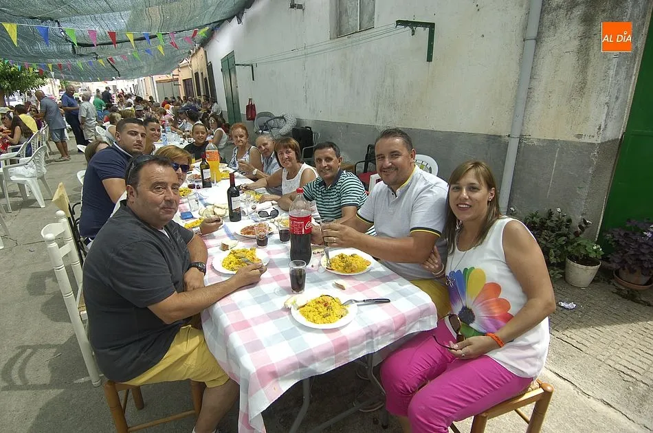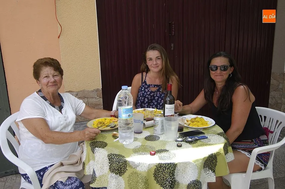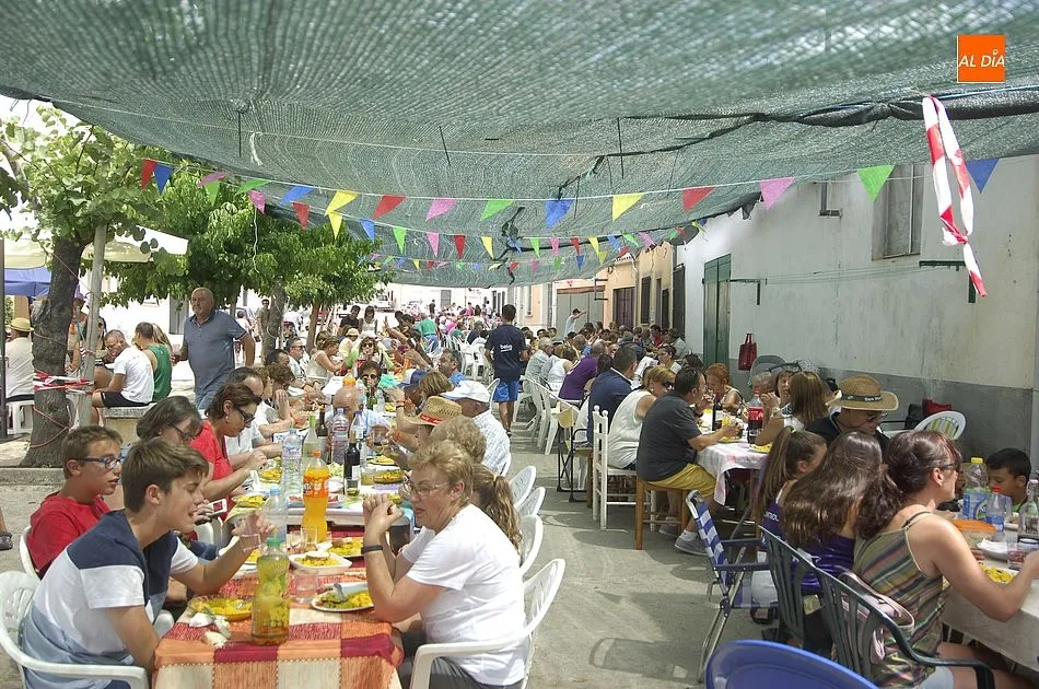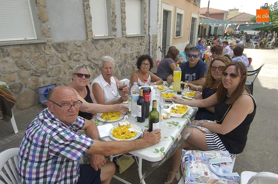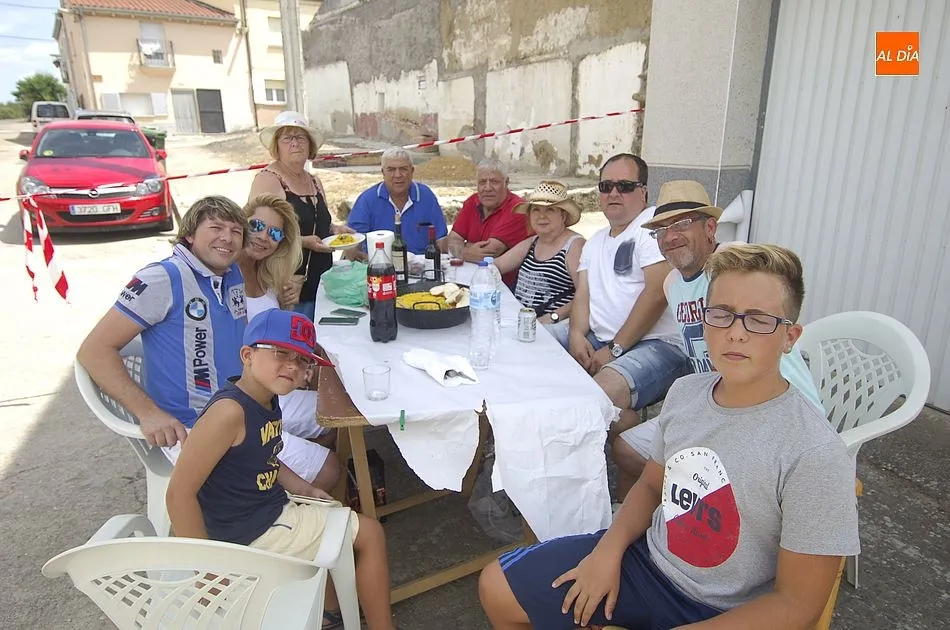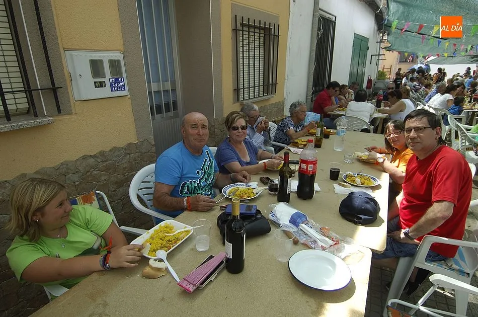 Concluida la capea, llegó la hora de comer, algo que todos los vecinos hicieron juntos en plena calle, con mesas y sillas colocadas lo más cerca posible entre sí, aunque buscando siempre la sombra. Los vecinos dieron buena cuenta en ese gran comedor al aire libre de la gran paella preparada en plena calle por el chef José Luis Benito y su equipo.