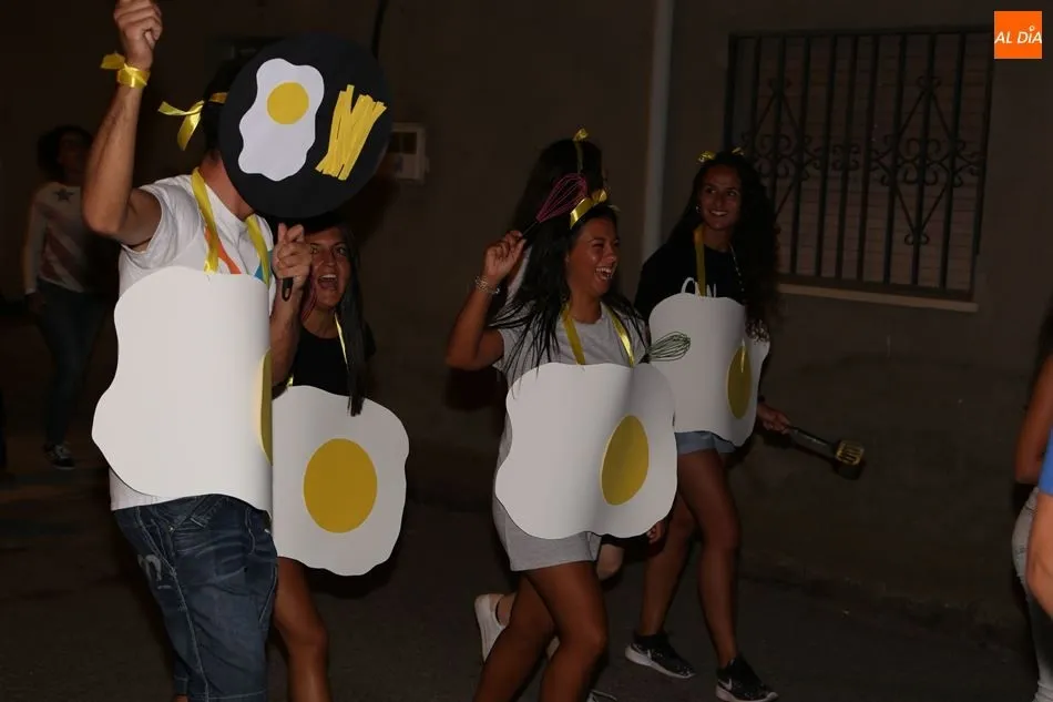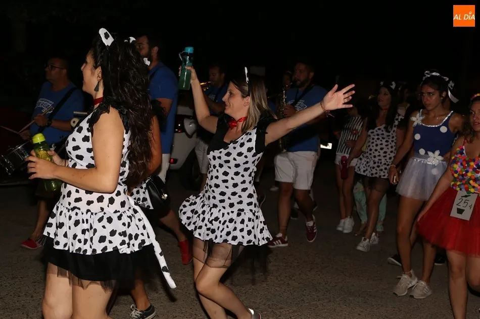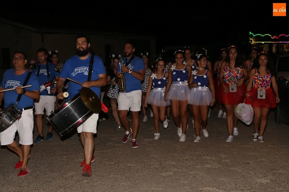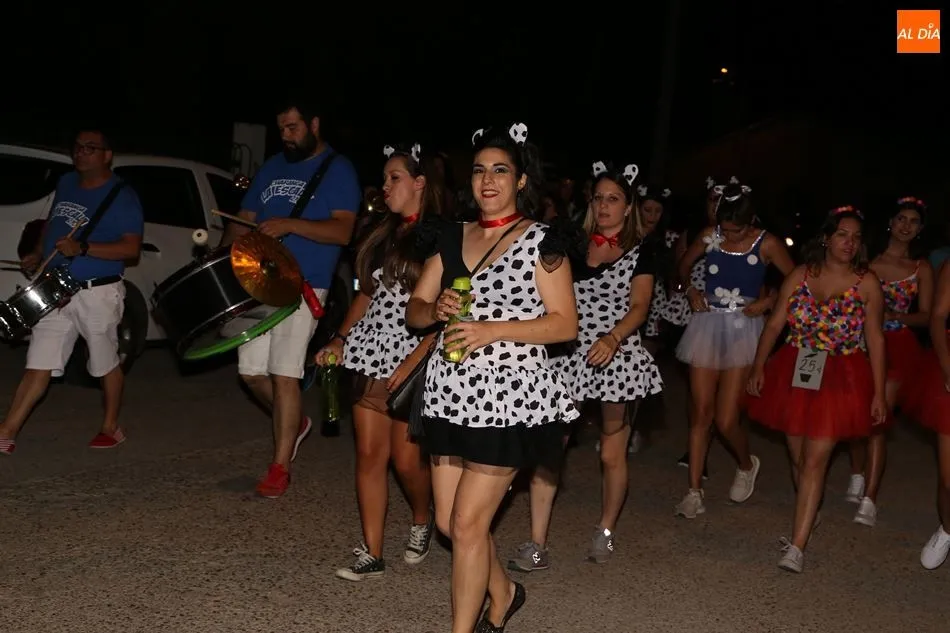 Las peñas protagonizaron la noche del sábado en las fiestas de Encinas de Abajo. Acompañadas por la charanga La Escala 2.0, dieron por el pueblo una vuelta que finalizó en el frontón, donde participaron en el concurso de disfraces. Numerosos vecinos se sumaron también al recorrido y asistieron como público al certamen.