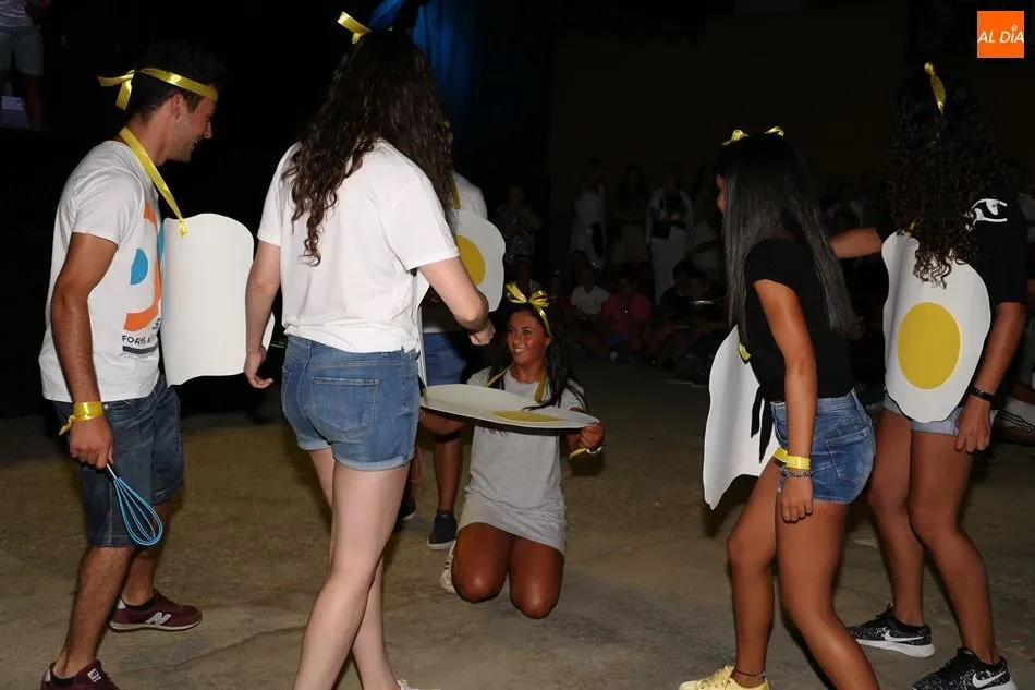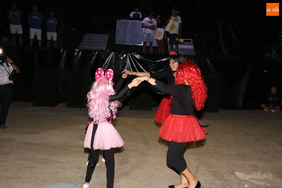 Disfraces de nadadoras sincronizadas, máquinas de chicles, ratitas y huevos fritos fueron los trajes ideados por los participantes en el concurso, quienes se sometieron al escrutinio de un jurado formado por varios integrantes de la charanga. Tras los adultos, cuatro niños se animaron a salir al centro de la plaza para mostrar sus disfraces y bailar. El ganador sería anunciado en el primer descanso de la discoteca Sonora Dance.