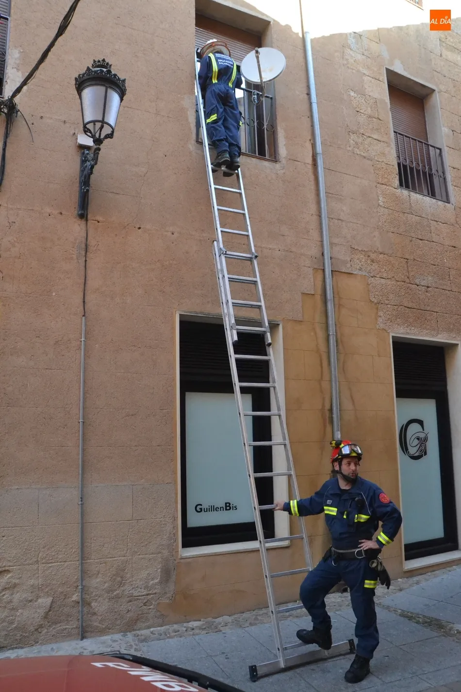 Parte de los mirobrigenses ?aquellos que no entraron de los primeros- que estaban esperando en la mañana del domingo a las puertas del Teatro Nuevo Fernando Arrabal para adquirir entradas para la Feria de Teatro de Castilla y León tuvieron un ?entretenimiento? mientras hacían cola, en forma de intervención de los Bomberos justo delante suyo.