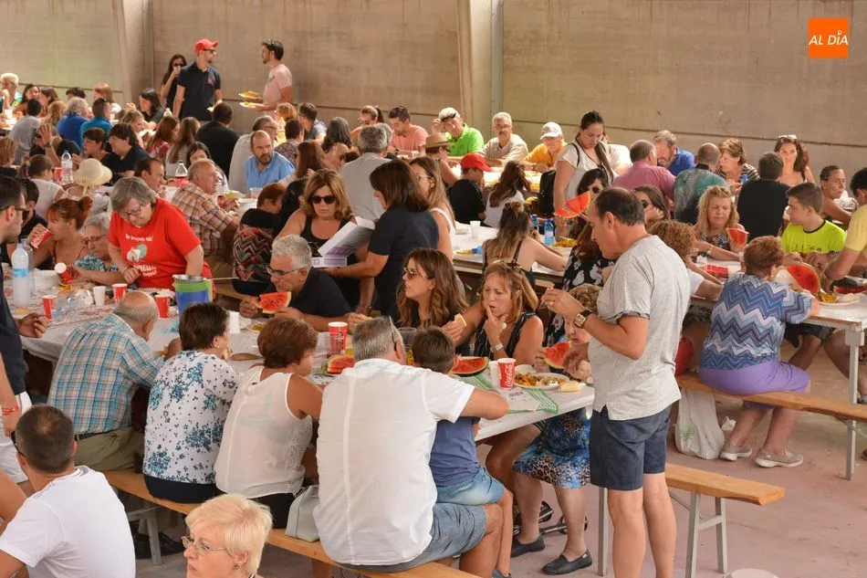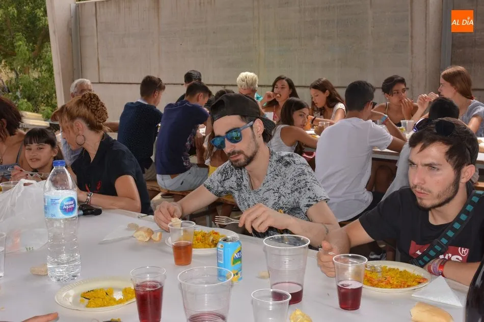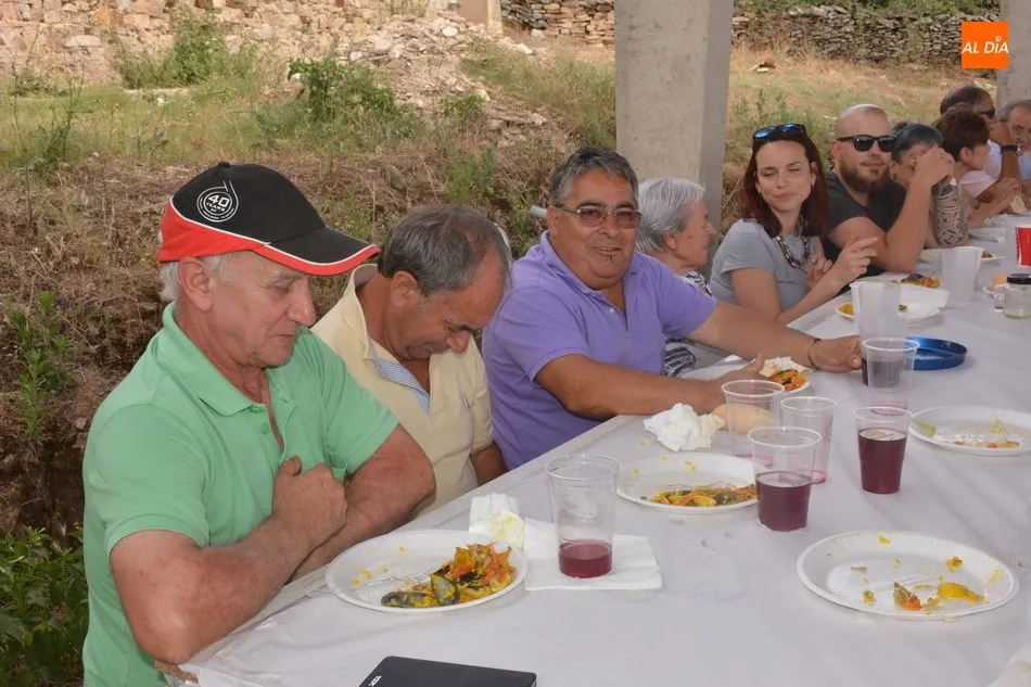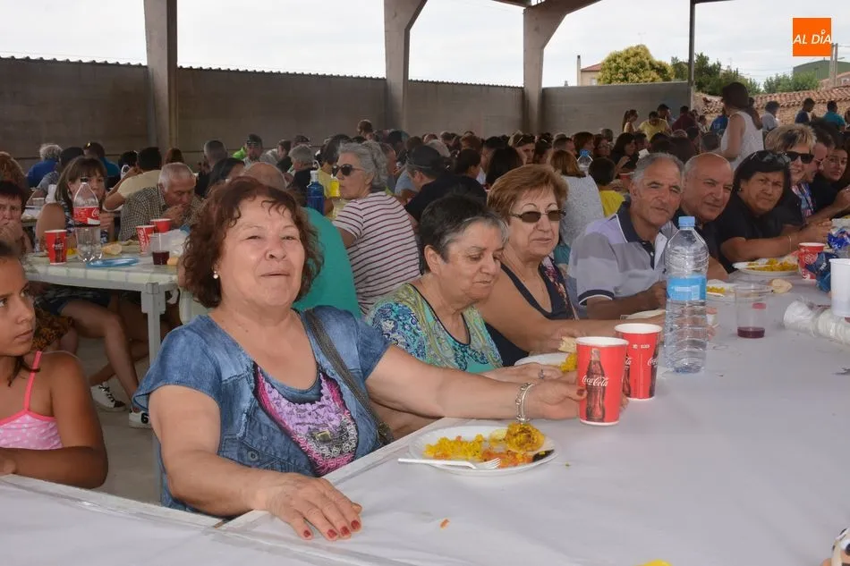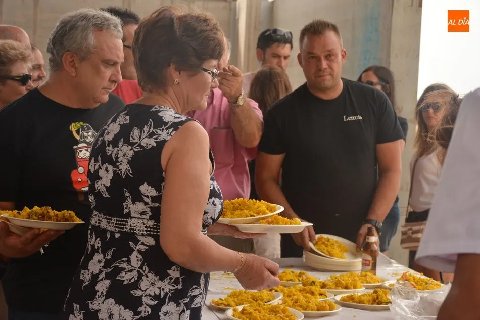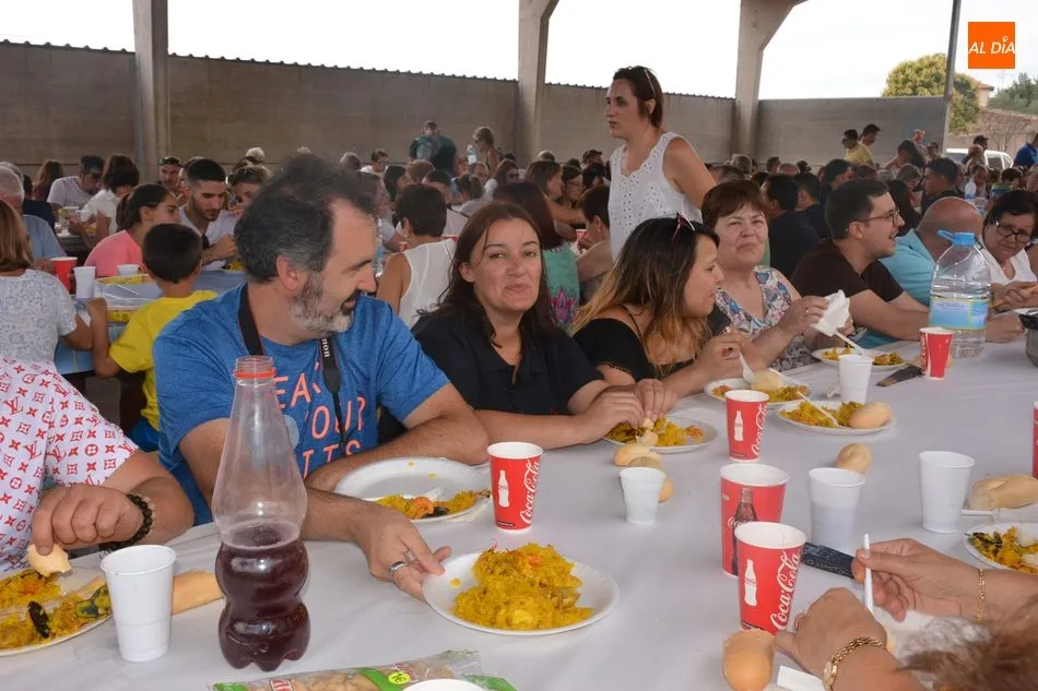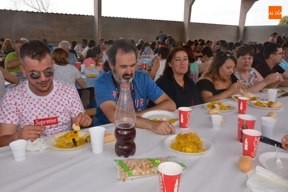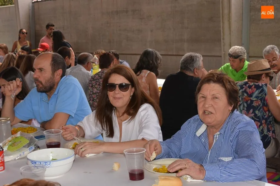 Los conductores de los clásicos se unieron a los vecinos en la gran paellada, que reunió a cerca de 400 comensales, que disfrutaron de la comida previo pago del cubierto (6,50? que ayudan a financiar la comida y contribuir a la celebración de las fiestas). Niños, jóvenes y muchos mayores compartieron el plato de paella, bebida, sandía y café, además de la compañía y la ganas de diversión en estos días de fiesta.