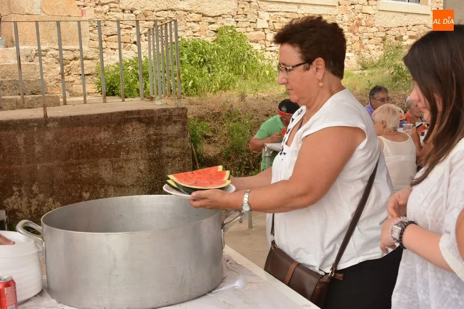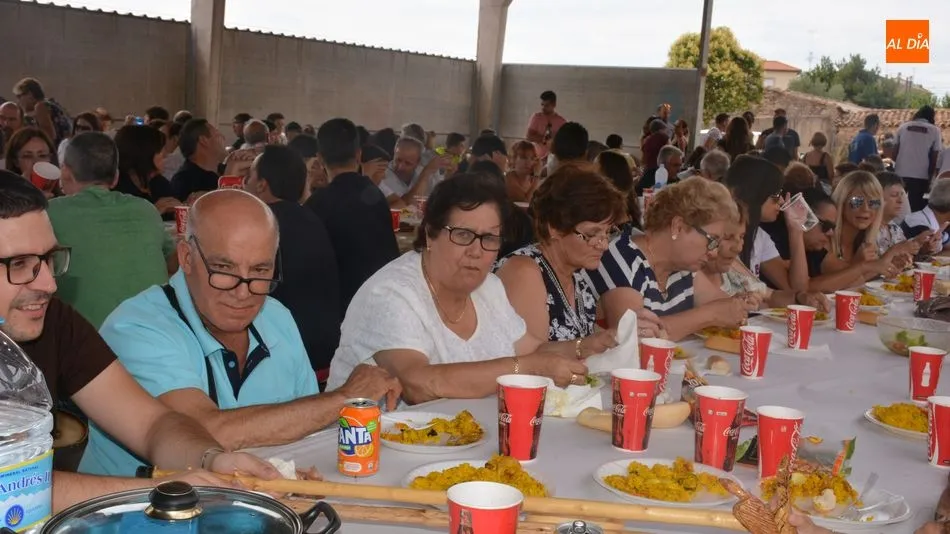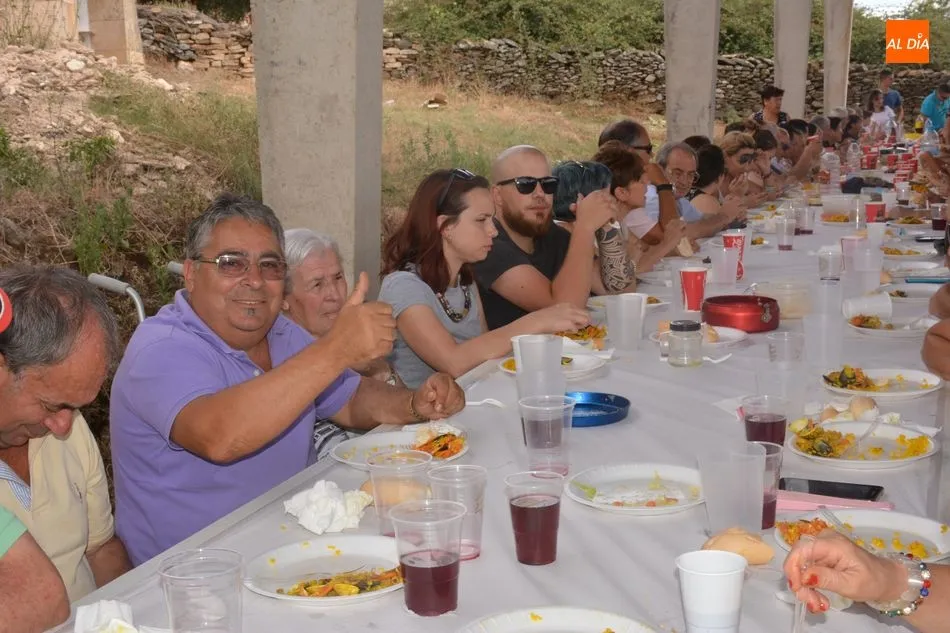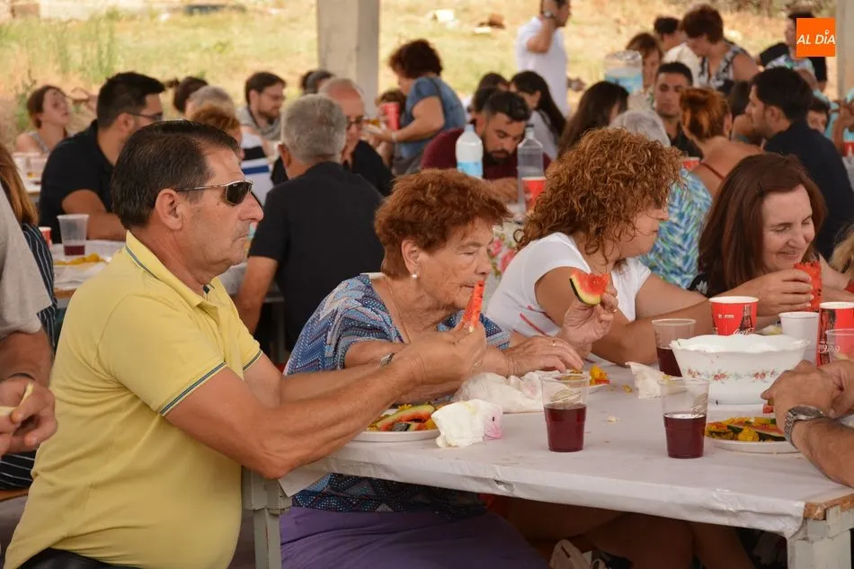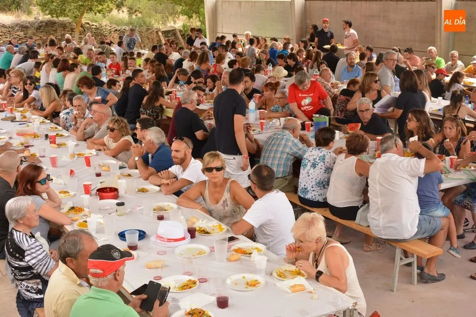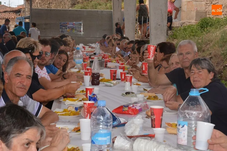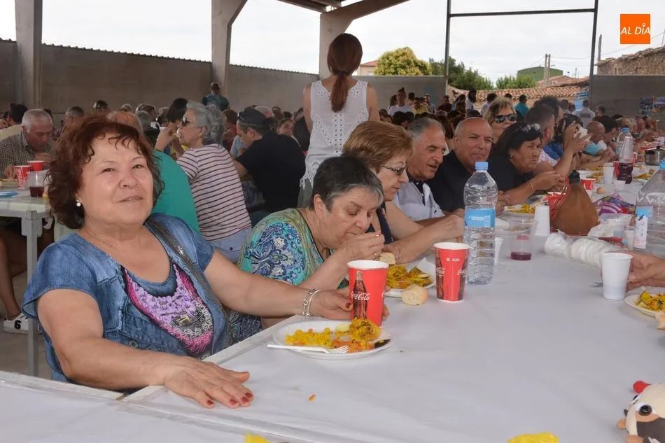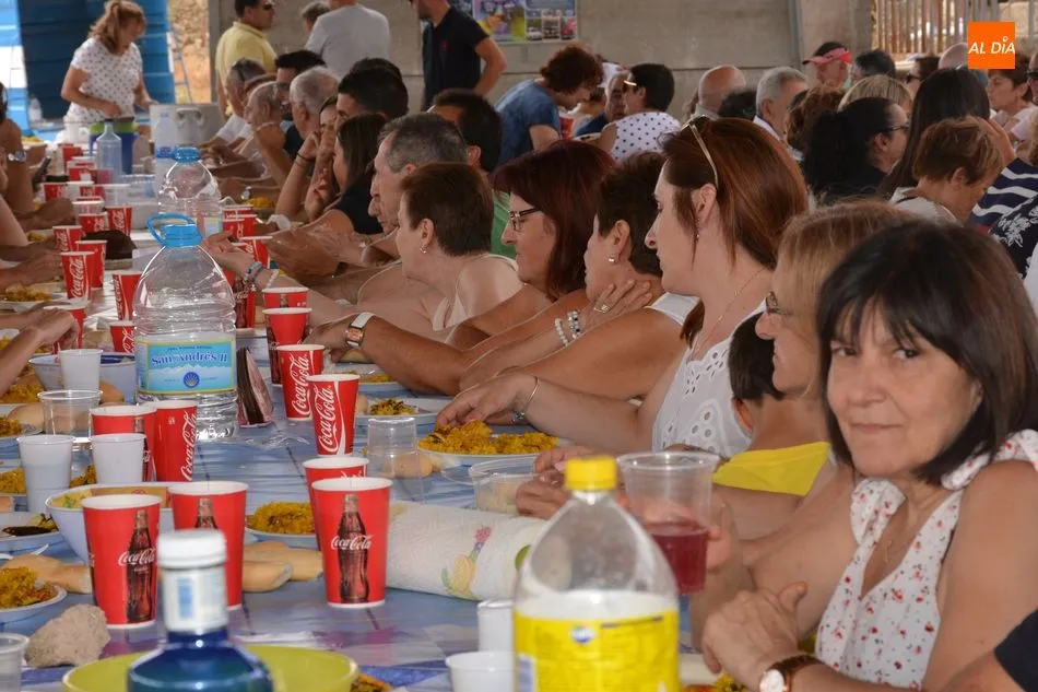 Los conductores de los clásicos se unieron a los vecinos en la gran paellada, que reunió a cerca de 400 comensales, que disfrutaron de la comida previo pago del cubierto (6,50? que ayudan a financiar la comida y contribuir a la celebración de las fiestas). Niños, jóvenes y muchos mayores compartieron el plato de paella, bebida, sandía y café, además de la compañía y la ganas de diversión en estos días de fiesta.