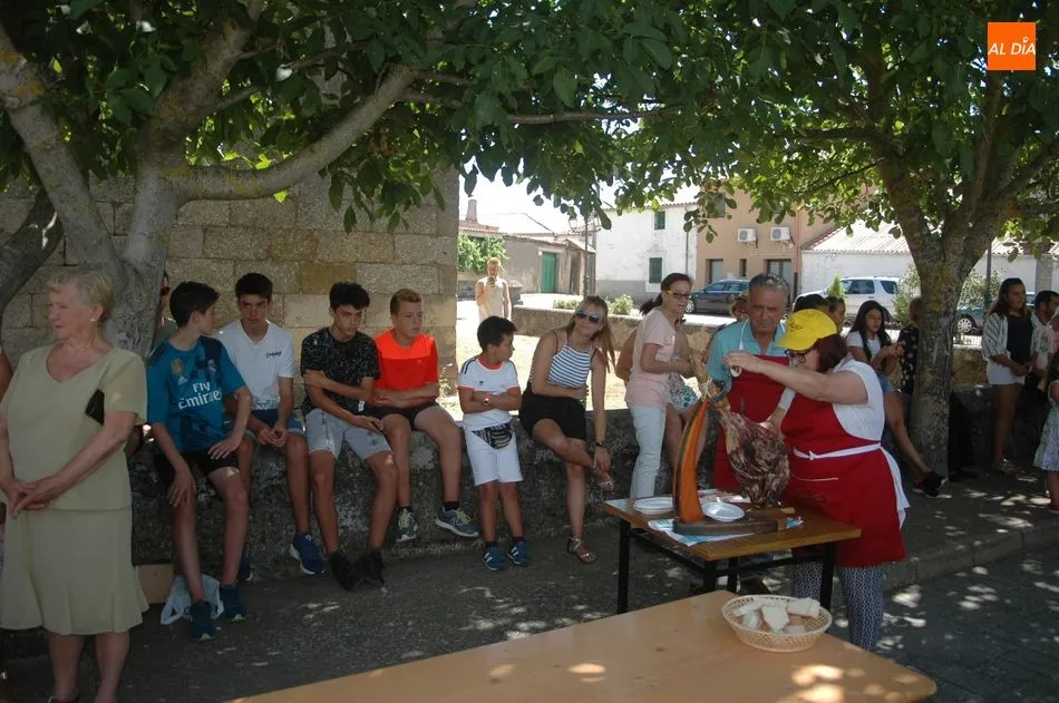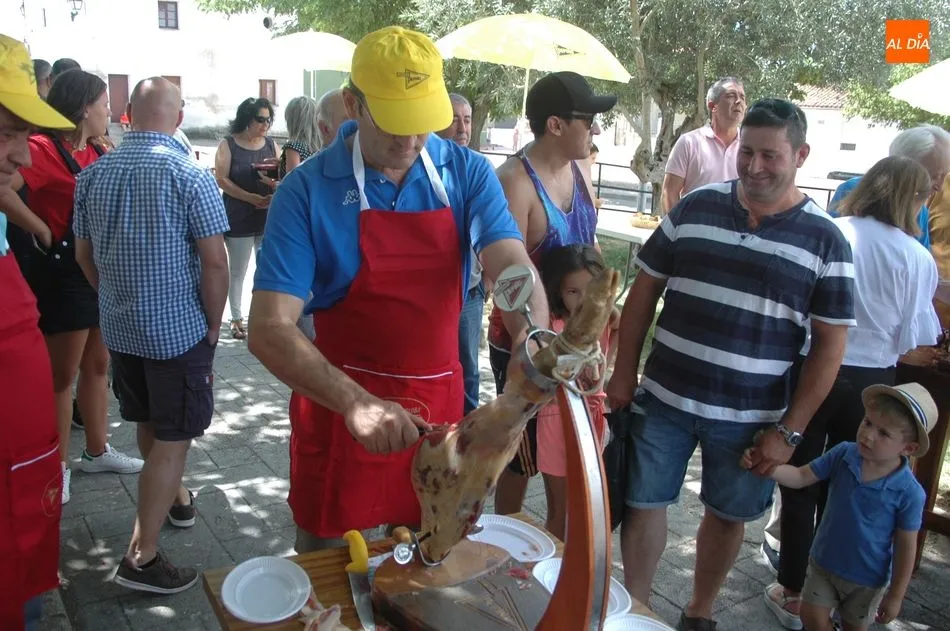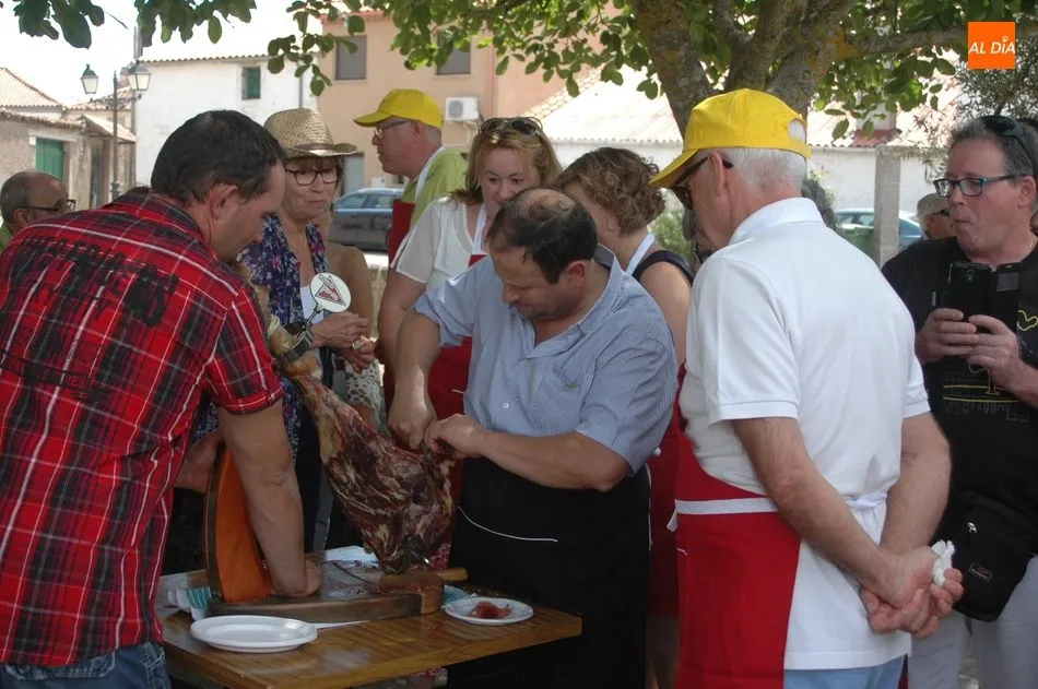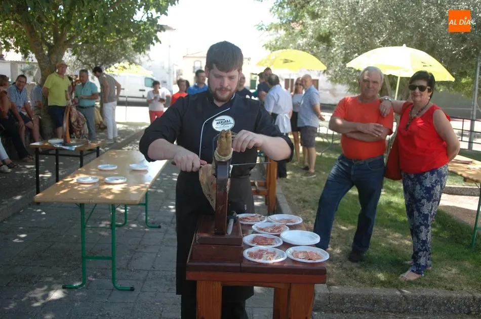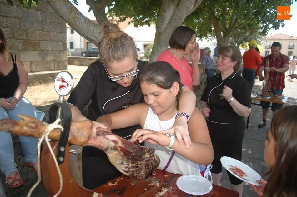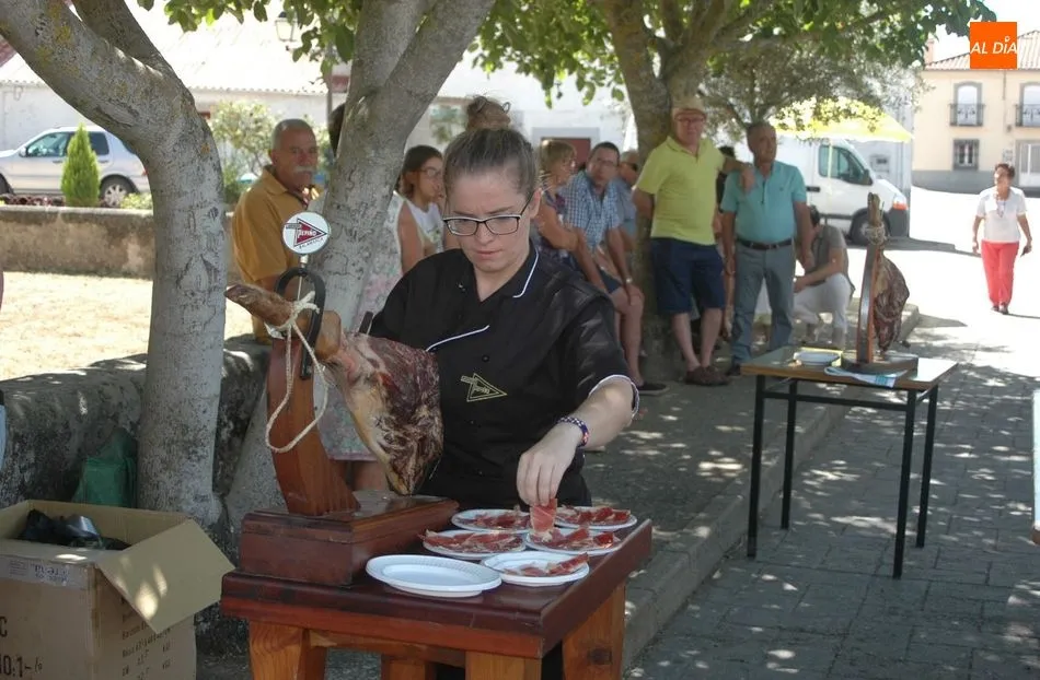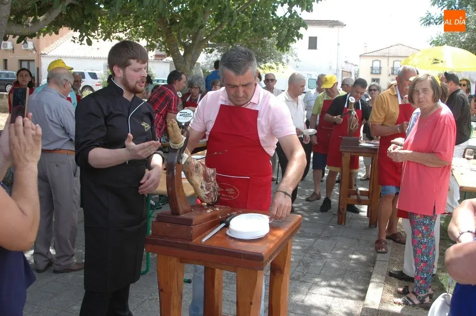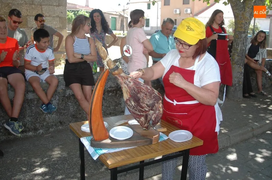 Tras unas nociones básicas, para reconocer las partes del jamón, qué utensilios son los más apropiados, cómo limpiar la pieza y cuál es el corte apropiado para saborear bien el jamón, el numeroso público que se concentraba en la plaza tuvo la oportunidad de poner en práctica las explicaciones de ?Chan?, con la ayuda de María José y los hijos de ambos, Cristina y Jose, quienes iban guiándoles durante el proceso para sacar una buena loncha de jamón. Para finalizar con una degustación de jamón para todos los asistentes.