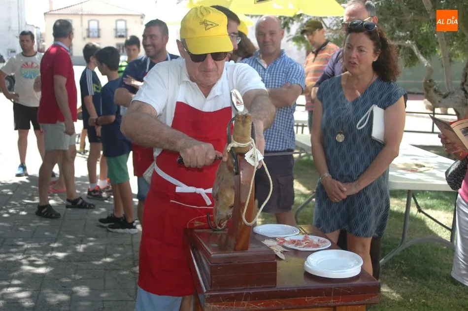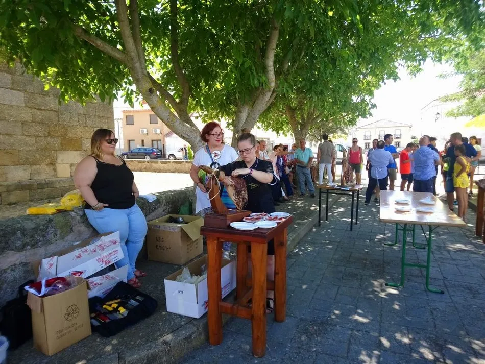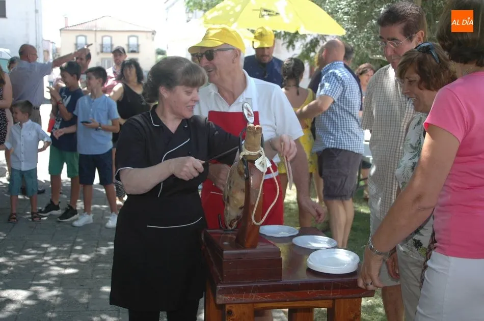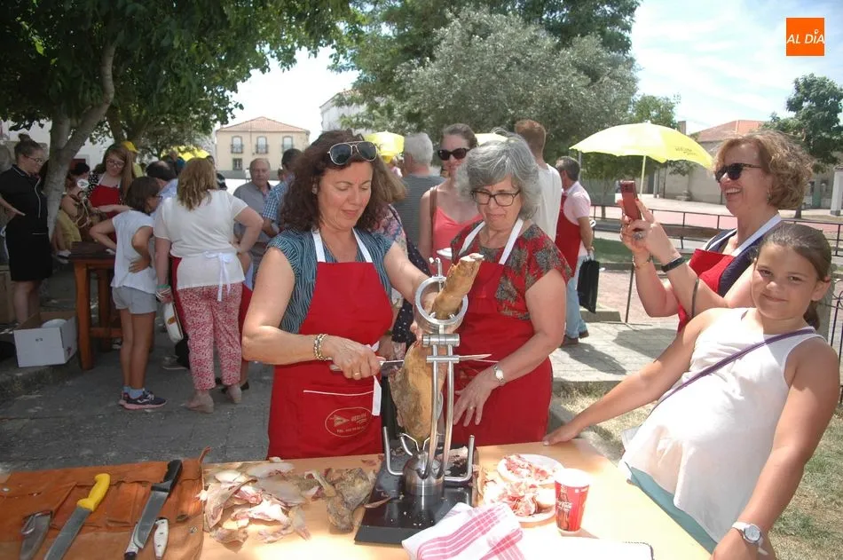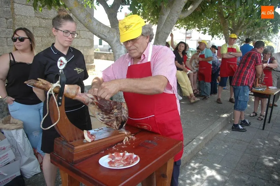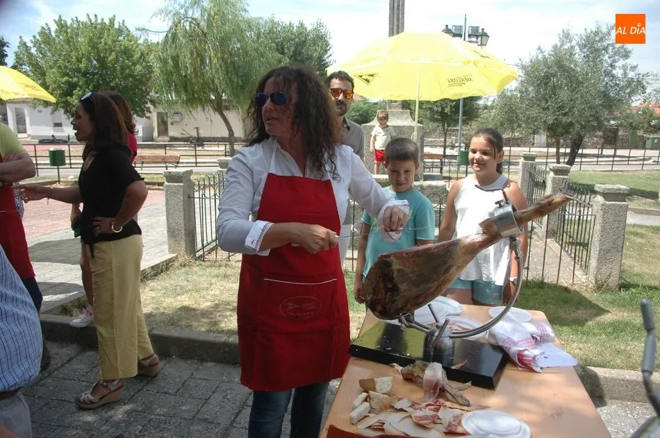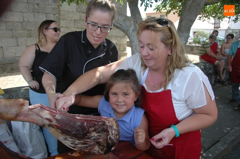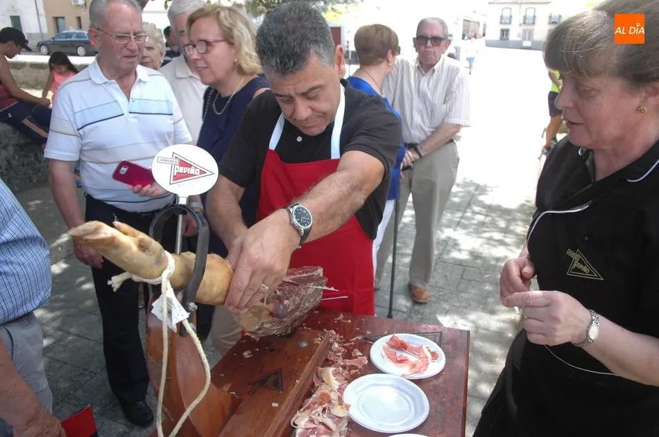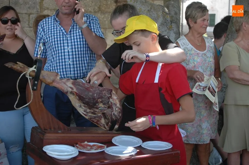 Tras unas nociones básicas, para reconocer las partes del jamón, qué utensilios son los más apropiados, cómo limpiar la pieza y cuál es el corte apropiado para saborear bien el jamón, el numeroso público que se concentraba en la plaza tuvo la oportunidad de poner en práctica las explicaciones de ?Chan?, con la ayuda de María José y los hijos de ambos, Cristina y Jose, quienes iban guiándoles durante el proceso para sacar una buena loncha de jamón. Para finalizar con una degustación de jamón para todos los asistentes.