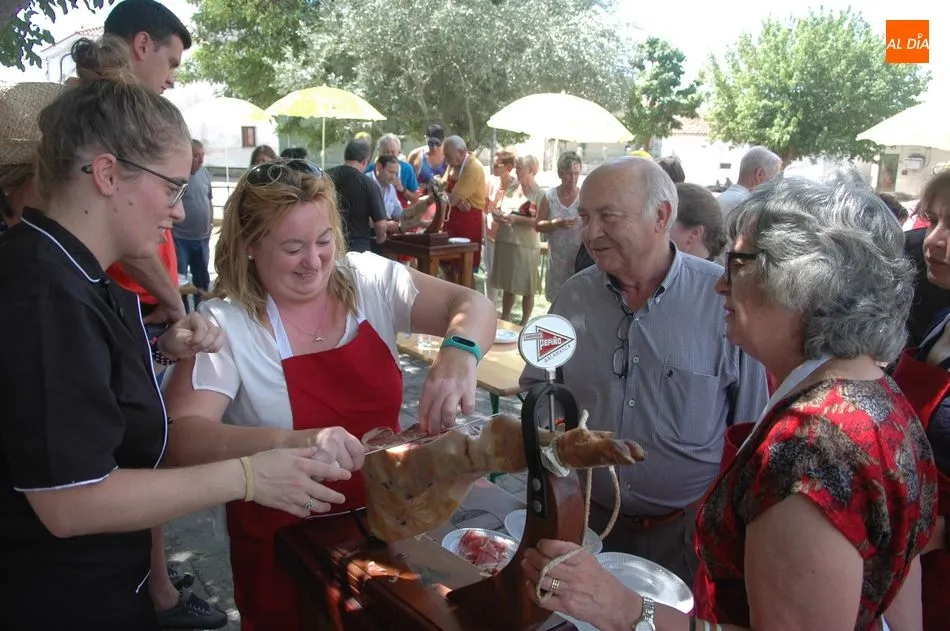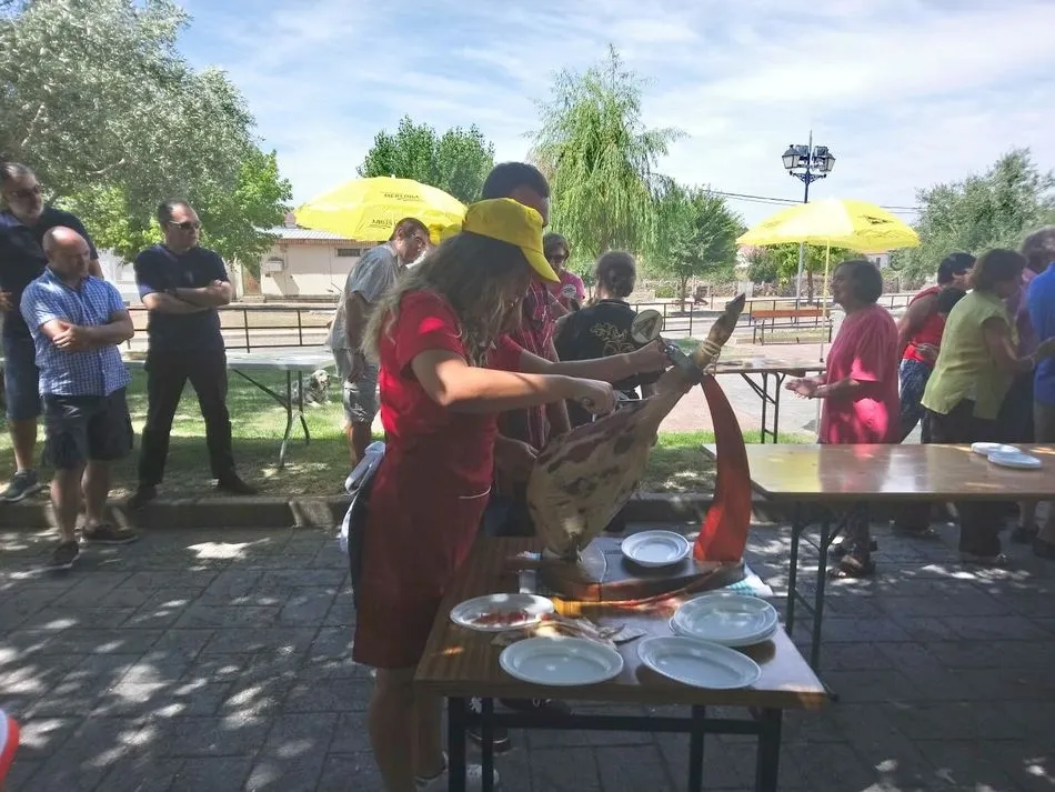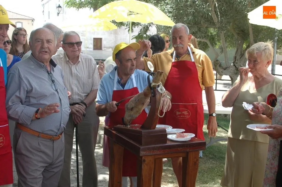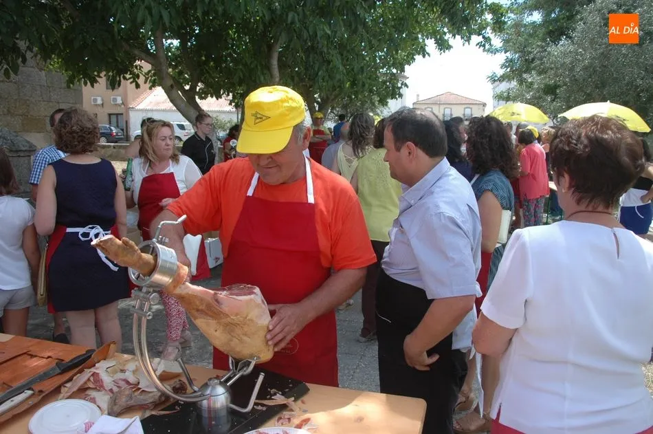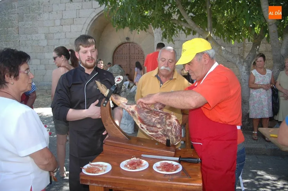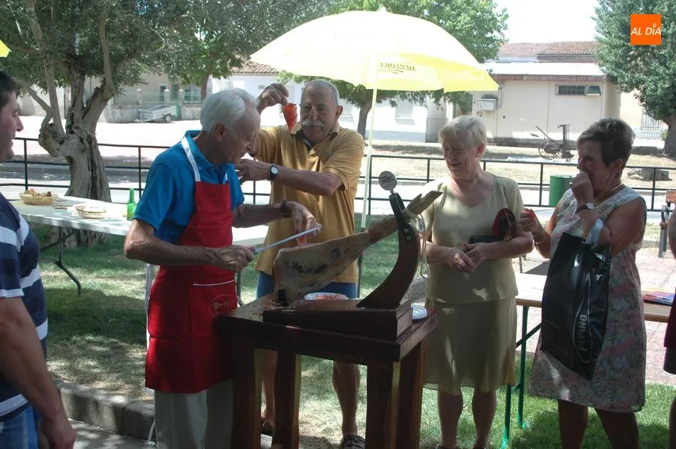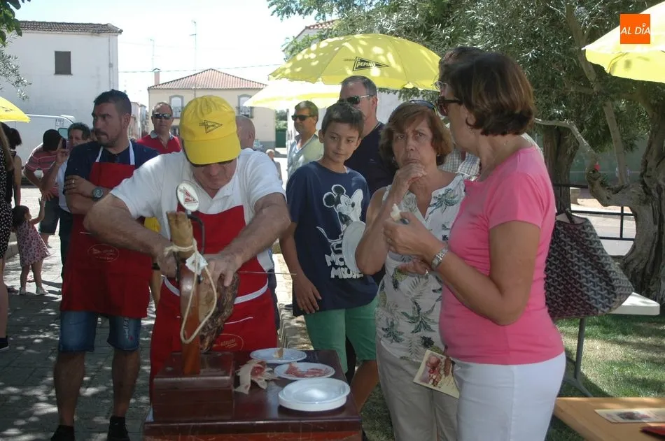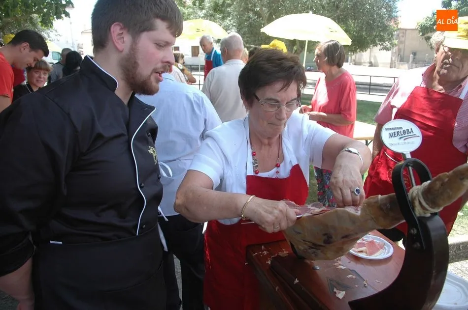 Tras unas nociones básicas, para reconocer las partes del jamón, qué utensilios son los más apropiados, cómo limpiar la pieza y cuál es el corte apropiado para saborear bien el jamón, el numeroso público que se concentraba en la plaza tuvo la oportunidad de poner en práctica las explicaciones de ?Chan?, con la ayuda de María José y los hijos de ambos, Cristina y Jose, quienes iban guiándoles durante el proceso para sacar una buena loncha de jamón. Para finalizar con una degustación de jamón para todos los asistentes.