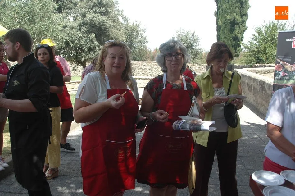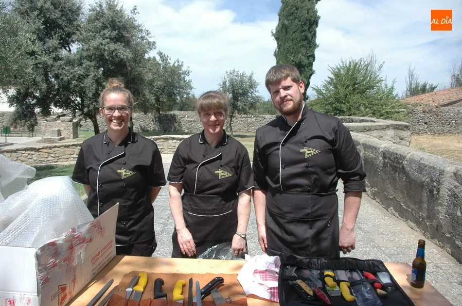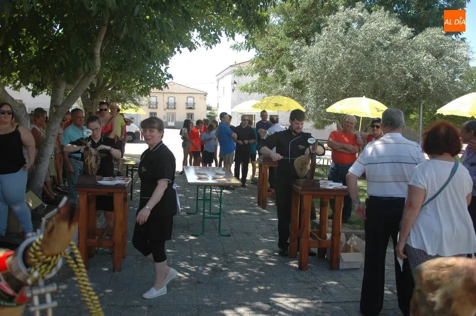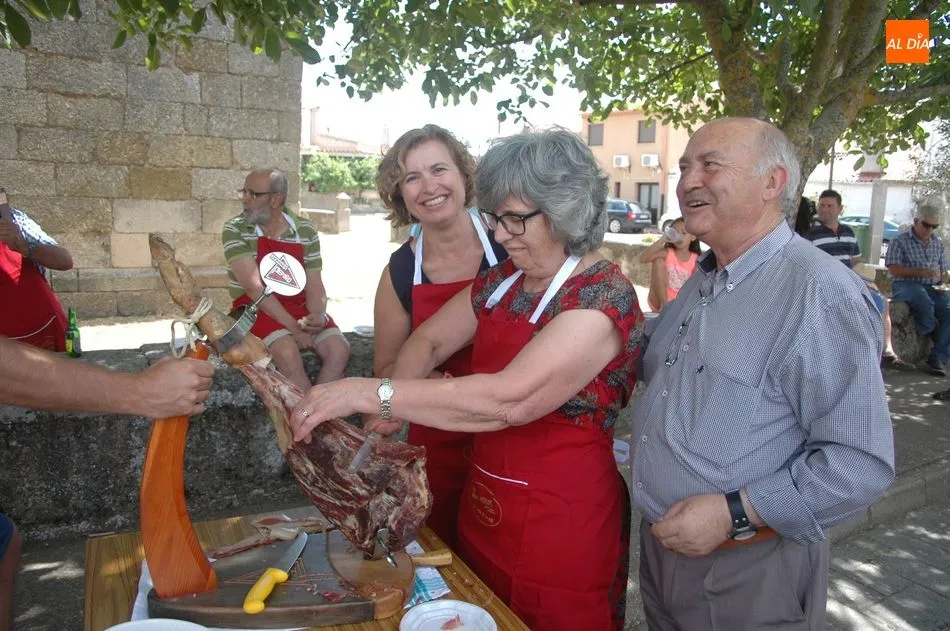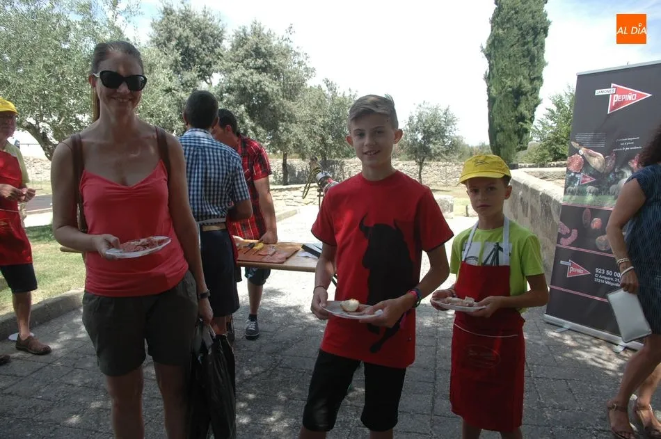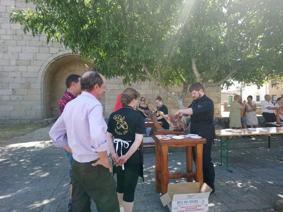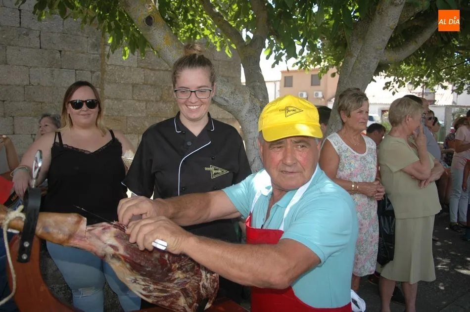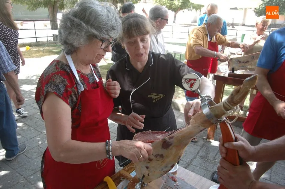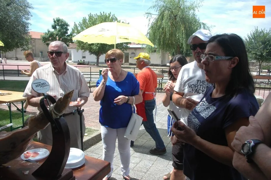 Tras unas nociones básicas, para reconocer las partes del jamón, qué utensilios son los más apropiados, cómo limpiar la pieza y cuál es el corte apropiado para saborear bien el jamón, el numeroso público que se concentraba en la plaza tuvo la oportunidad de poner en práctica las explicaciones de ?Chan?, con la ayuda de María José y los hijos de ambos, Cristina y Jose, quienes iban guiándoles durante el proceso para sacar una buena loncha de jamón. Para finalizar con una degustación de jamón para todos los asistentes.