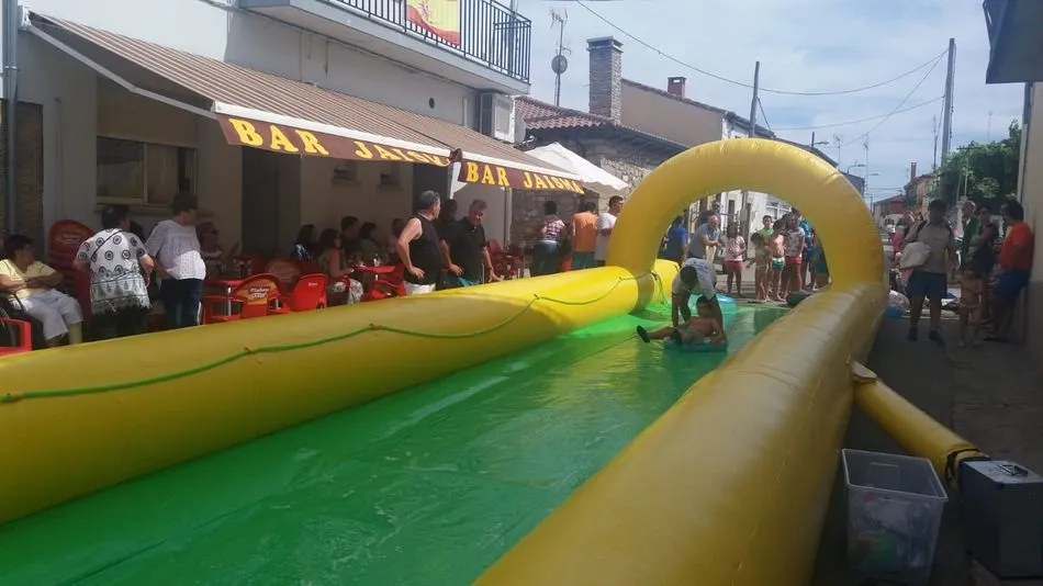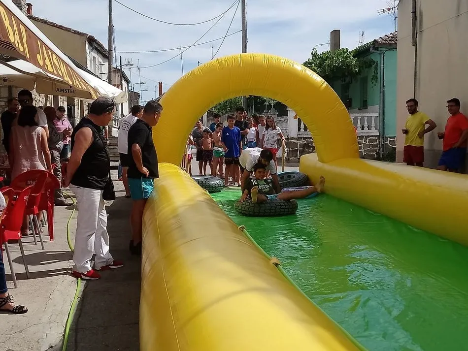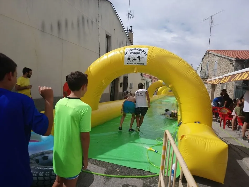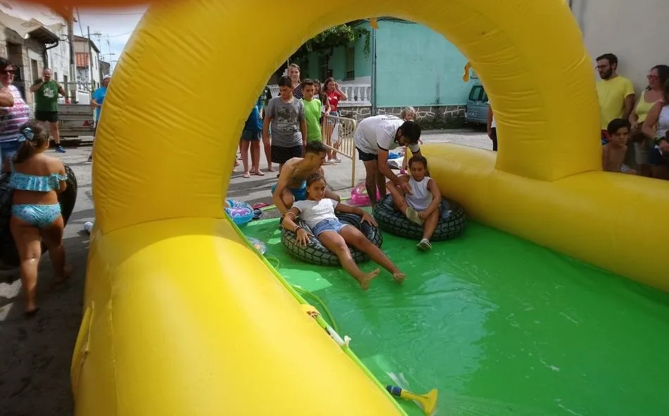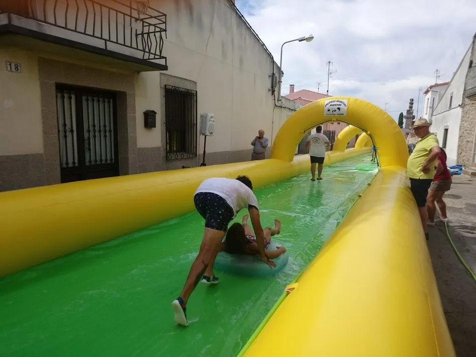 Un gran tobogán acuático de 50 metros de longitud, a cargo de ?Encierros Infantiles Carlos Huertos?, era la atracción de la tarde, donde una gran cola de niños se concentraba en la calle El Arroyo, para deslizarse en el tobogán.