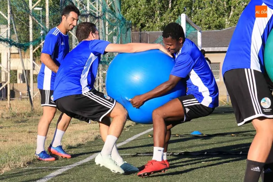 En la tarde del lunes, este equipo llevó a cabo en los Campos de Tori de Salamanca su primera sesión de entrenamiento, pero tanto Agudo como Samuel participaron en otra: la que realizó de forma previa otro equipo que de igual modo arrancó los entrenos en la tarde del lunes: el filial Senior del Salmantino, que será rival del Ciudad Rodrigo en la Regional de Aficionados.
