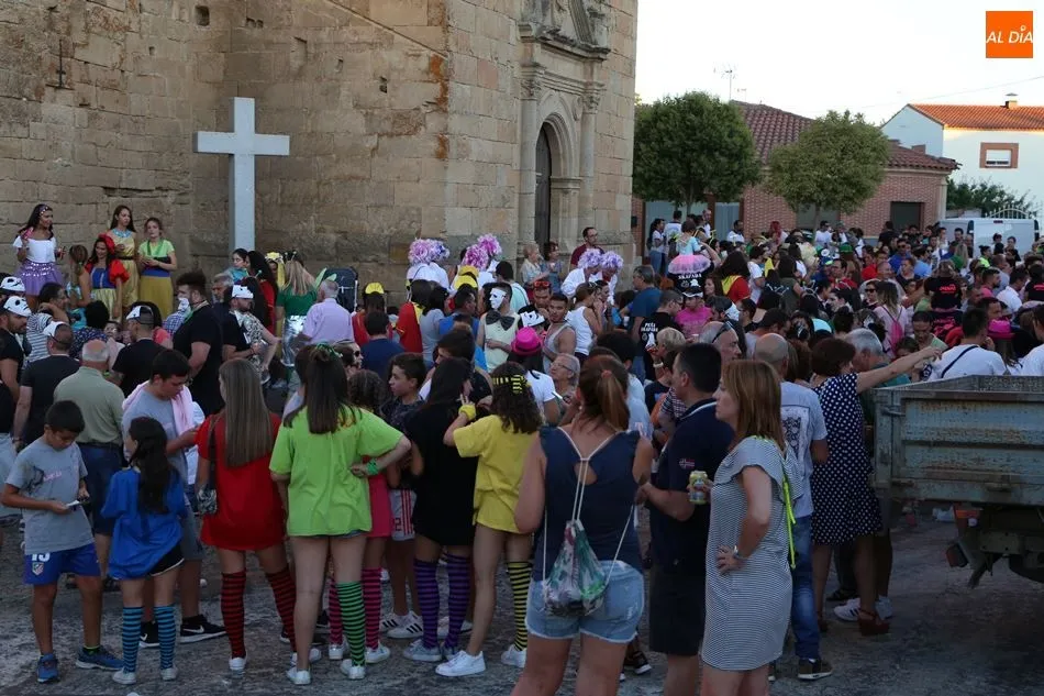 La Plaza de España acogía el inicio del recorrido. Allí se dieron cita los peñistas con sus disfraces. Los personajes de la serie La casa de papel, piezas de dominó y las princesas Disney han sido algunos de los disfraces elegidos. Los Tocacharros, la charanga de Cantalpino, guio con su música a los asistentes hasta la primera parada. El recorrido se hacía tan largo en años anteriores, durando hasta altas horas de la noche, que este año se decidió agrupar a las peñas en seis puntos del pueblo, en lugar de acudir a cada uno de sus locales. La iglesia era el primero de estos puntos, donde esperaban con sus pinchos y bebidas las peñas Revelers, Sklyvers, Santuario, Mordisco y Los Porras. Una vez que los platos y vasos se vaciaban, era el momento de que Los Tocacharros encaminasen a los cantalpineses hasta la siguiente parada.