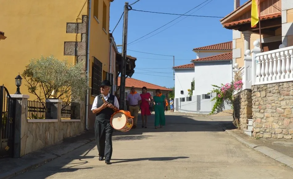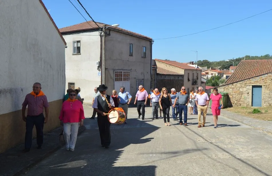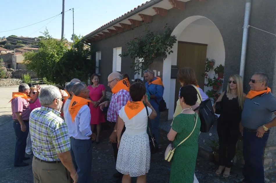 Al ritmo de la gaita y el tamboril, la jornada daba comienzo en la mañana con una ronda por el pueblo mientras iban recogiendo a cada quinto y quinta por su casa, y tras ponerle el pañuelo conmemorativo de este día, se unía a la comitiva para recoger al siguiente, así hasta completar el grupo de los 9 quintos y las 3 quintas que han participado en esta reunión.