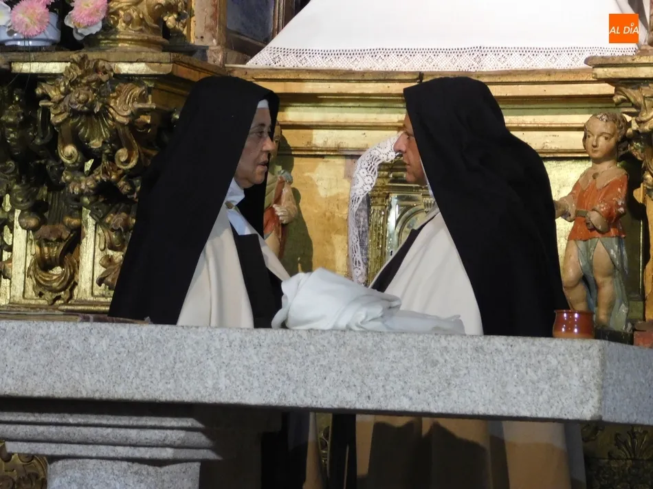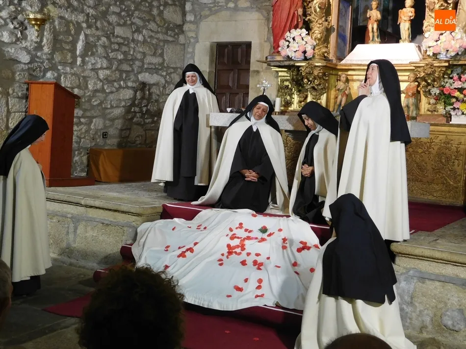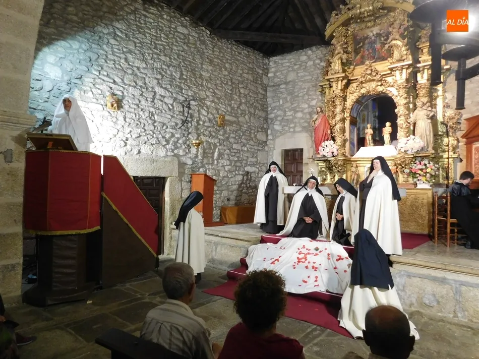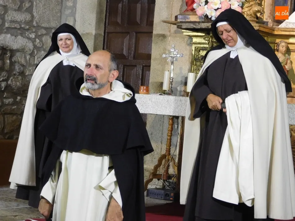 San Martín, en cuyo honor se levantó la parroquia de La Redonda, asiste desde su hornacina de obispo. El que tanto supo de batallas y viajes a lomos de un caballo, de generosidad y entrega a otro tipo de vida, es espectador de excepción y ante los vecinos de La Redonda, comparte un espacio y tiempo que de repente parece ser el mismo y el más apropiado para todos los presentes. Cualquier iglesia alberga la fuerza y sonoridad suficientes para que nos llegue la biografía de una mujer que aunque viviera hace cinco siglos se ha convertido en universal. Los actores de ?Lazarillo de Tormes? con su interpretación logran detener el tiempo que circular y como el nombre de esta localidad, empieza y acaba en Teresa de Jesús sin moverse de un espacio que sin embargo nos transporta en el tiempo. Los cuadros escénicos configurados por unos hábitos de mujeres carmelitas ante el púlpito de un padre inquisidor no parecen anacrónicos, pues la fuerza de los diálogos que se entablan y la obviedad de lo narrado se acerca a cualquier persona que entienda de los valores que una mujer fue capaz de extender en su sociedad y hacernos llegar después de tanto tiempo a través de sus escritos.