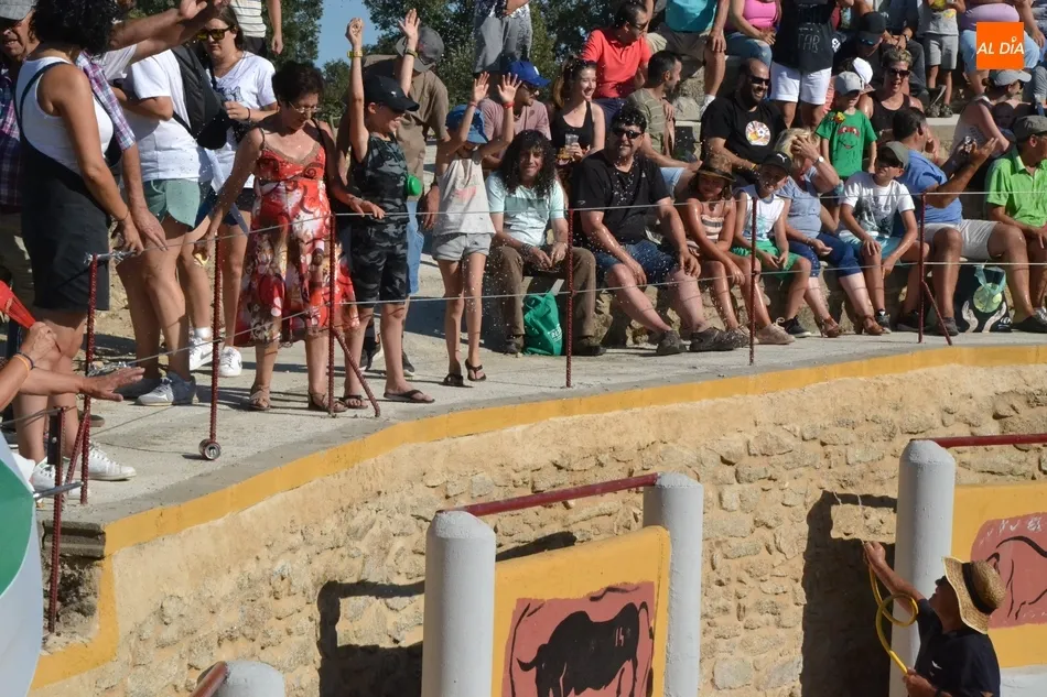 Esta remozada plaza fue escenario de una animada tarde taurina, que se inició, eso sí, con casi una hora de retraso respecto a lo inicialmente anunciado, entreteniéndose el público haciendo la ola, con la música de la Charanga Manliao, y siendo rociados con una manguera para aliviar el calor, algo que agradecieron especialmente los espectadores que estaban al sol.