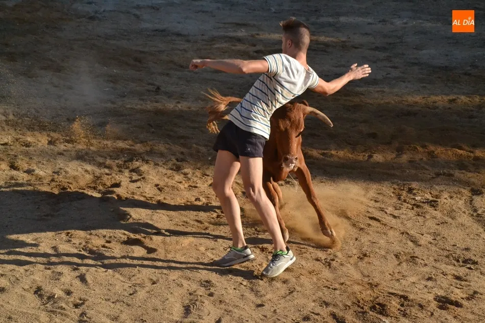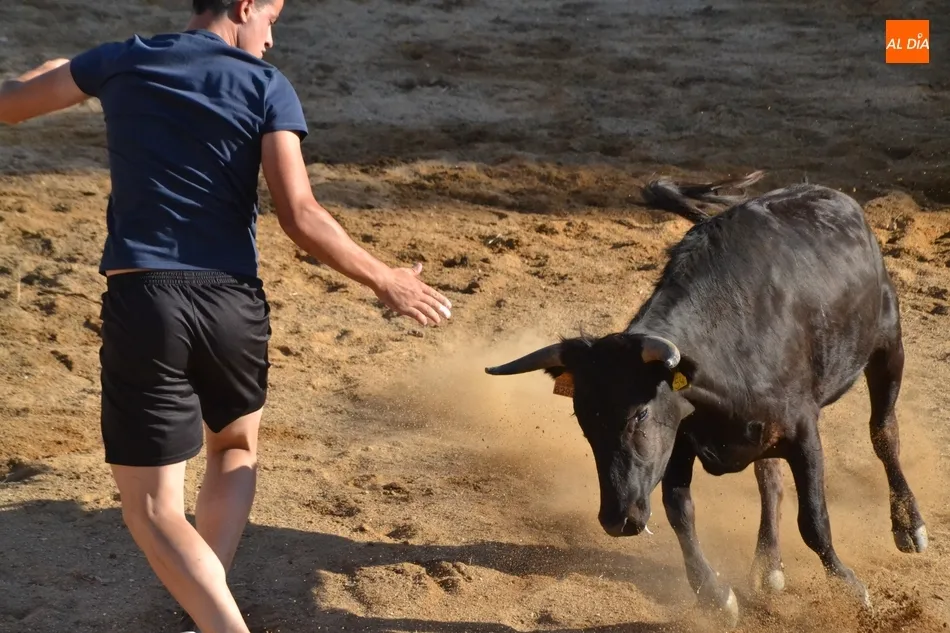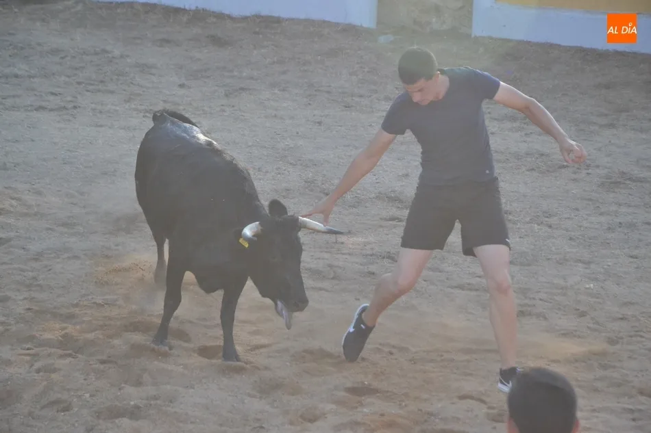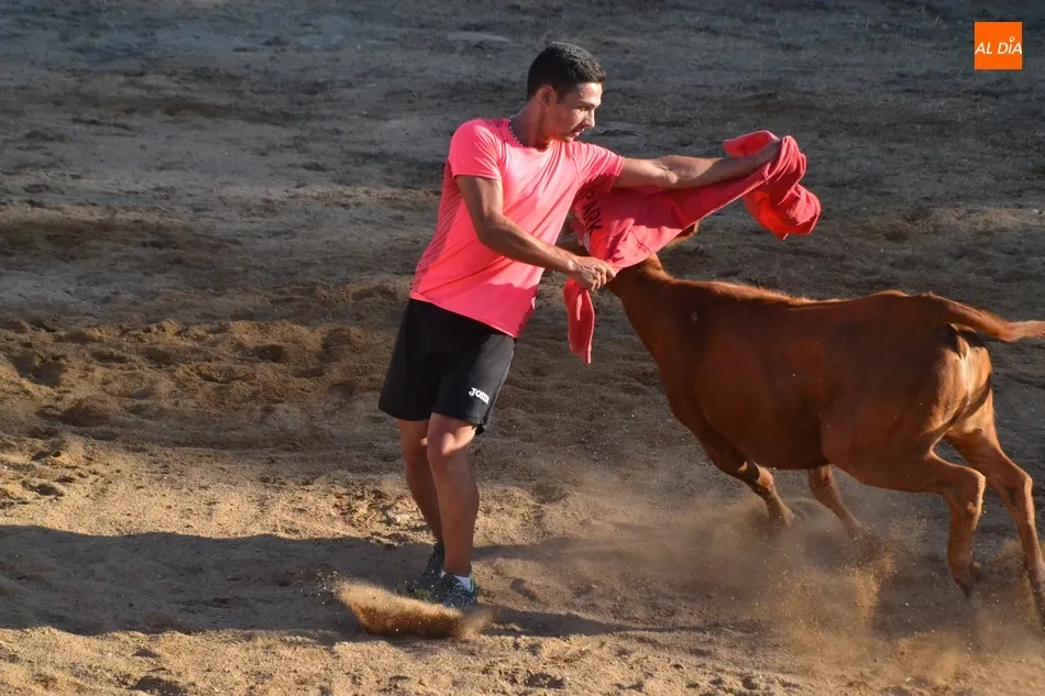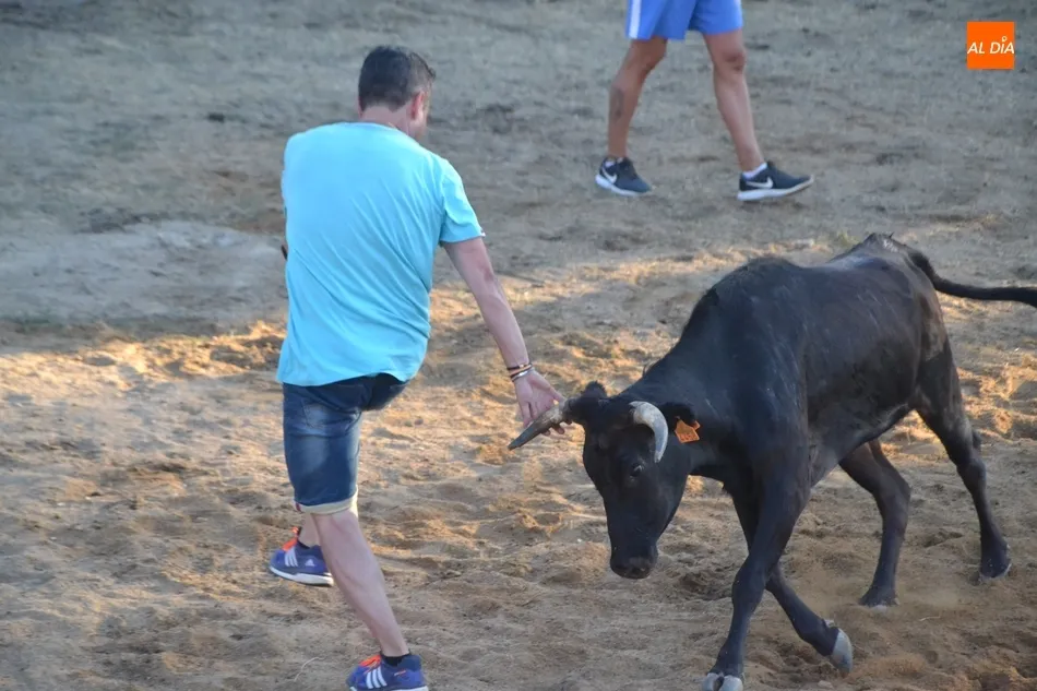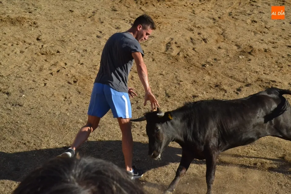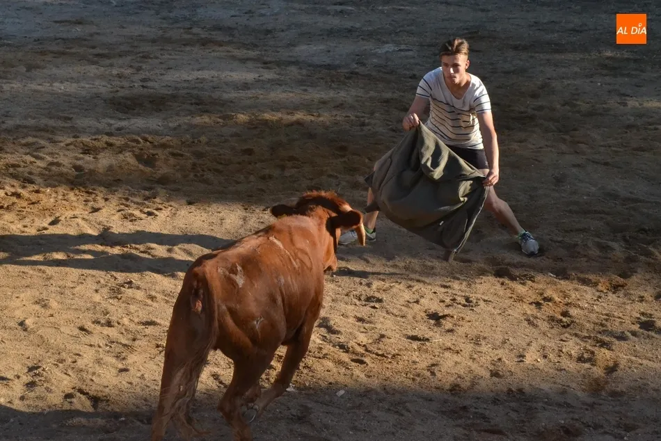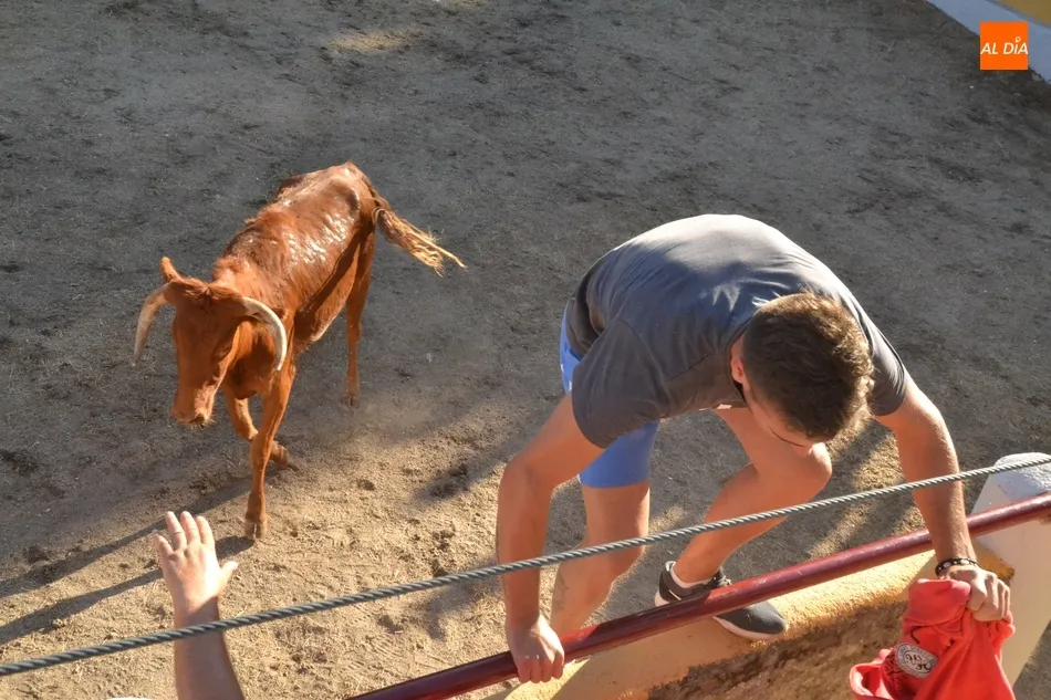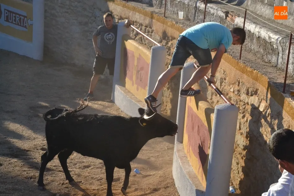 El primer protagonista de la tarde fue el novillero Juan Antonio Pérez Pinto, quién se vio las caras con el novillo que había tomado parte en el encierro matinal, lidiándole pero sin darle muerte. A continuación, llegó la hora de la capea abierta con las 6 vacas de la Ganadería de José Cruz que también habían intervenido en el encierro.