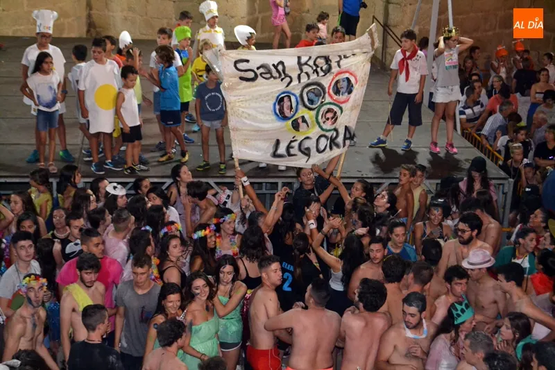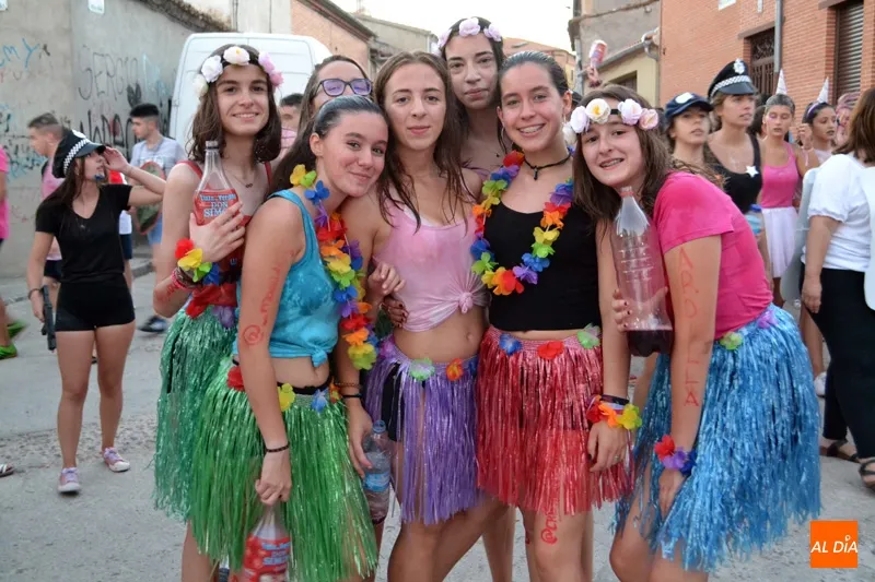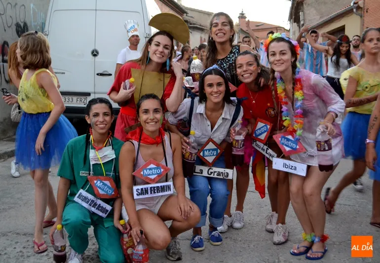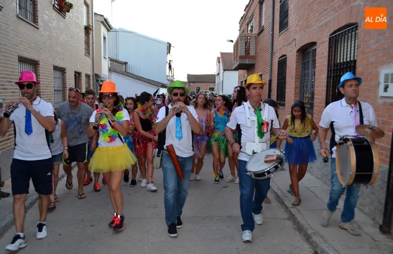 El pistoletazo de salida a los ?Sanroques? en la Villa no se ha podido vivir más intensamente gracias a una extensa celebración que ha contado en primer término con cientos de peñistas, quienes protagonizaban un divertido y colorido desfile arropados por la música y multitud de vecinos y visitantes, quienes se unieron al recorrido festivo con bailes y el agua para mojar a los jóvenes, una de las tradiciones que, junto con el vino, son imprescindibles cada año en este inicio festivo.
