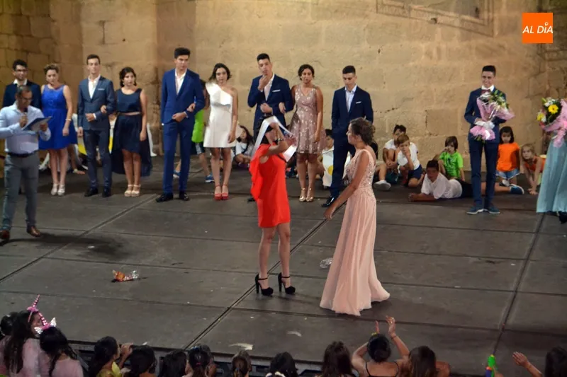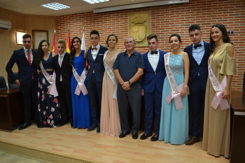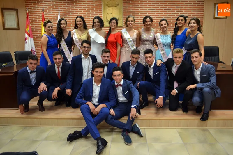Una vez llegados a la Plaza Mayor, era el turno de la Corte de las fiestas, que comenzaba su frenética actividad inicial en el Ayuntamiento con el tradicional posado con el que Irene Blázquez Bautista se convertía en 1ª Dama, Ana García Bueno en 2ª Dama, Ana Bautista Blázquez en 3ª Dama y Paula González Izquierdo en 4ª Dama, formado así una cuarteto de honor para arropar a María Hernández Sánchez, n