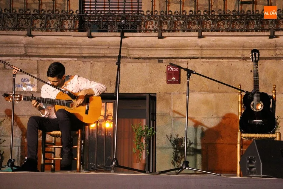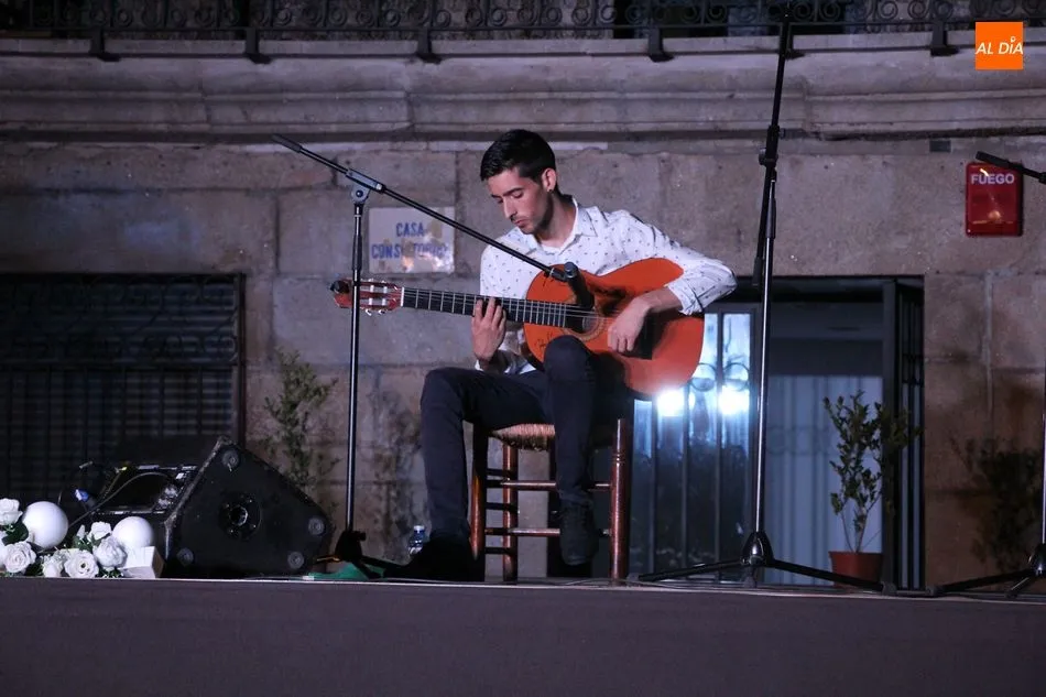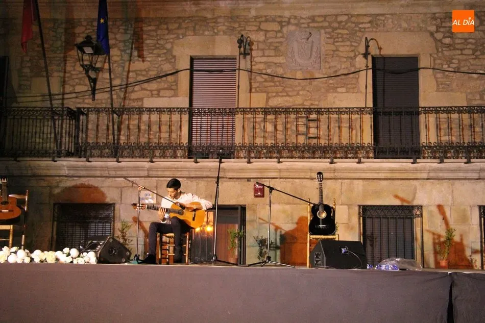 Vitigudino se llena una noche más con el flamenco, en esta ocasión, la Plaza de España acogía un recital Marcos Mateos Rubio a la guitarra, quien interpretó varios temas, algunos de ellos acompañado por Arturo Rivera. Una nueva actuación musical dentro del programa de Ferias y Fiestas organizado por el Ayuntamiento de la localidad.