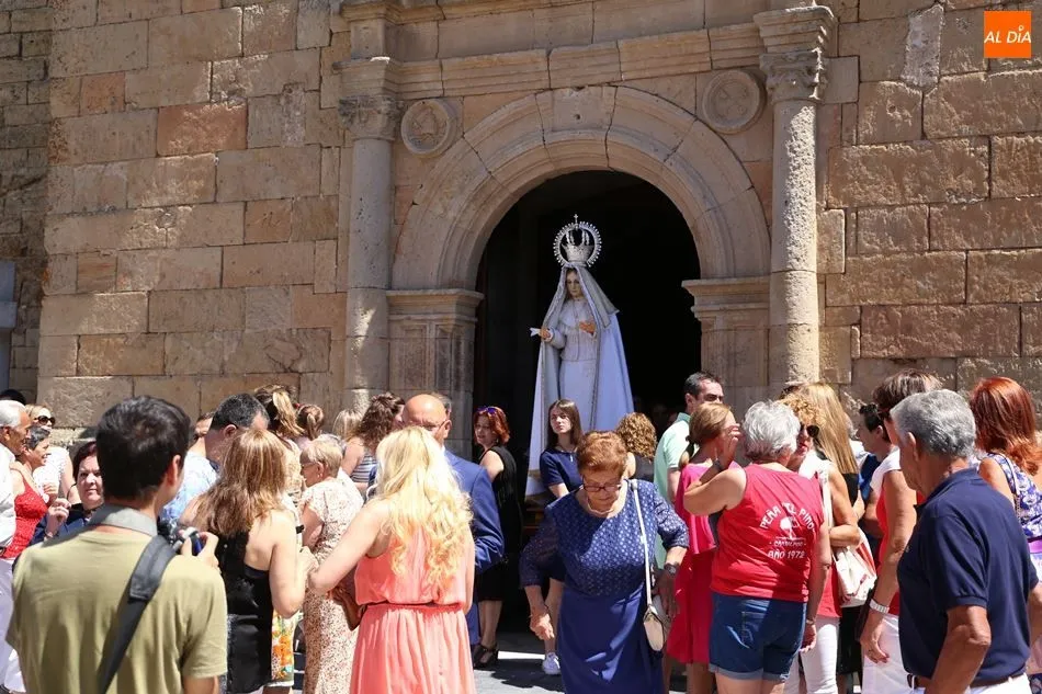Numerosos vecinos se congregaron en la mañana de este miércoles en la iglesia de San Pedro Apóstol de Cantalpino para asistir a los actos religiosos en honor a la patrona, la Virgen de la Asunción. La localidad celebra desde el martes sus fiestas.