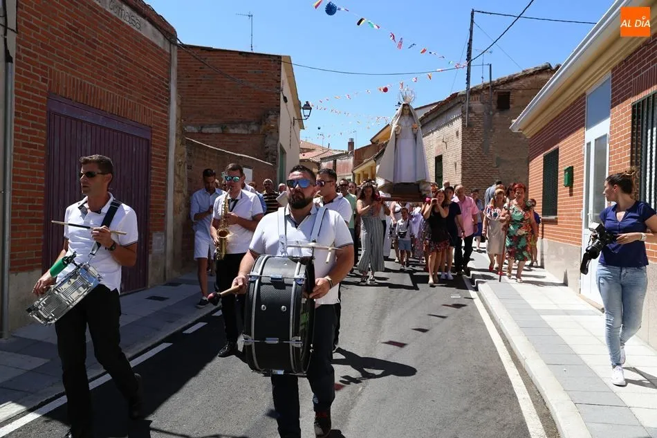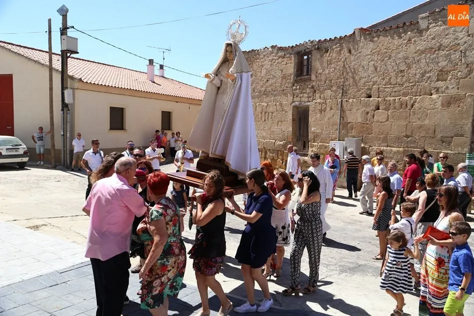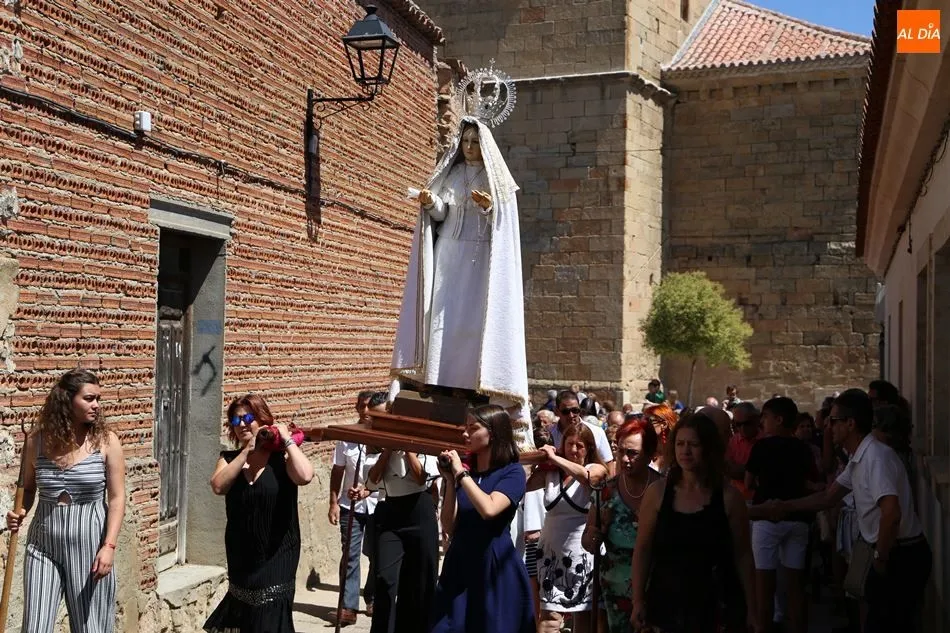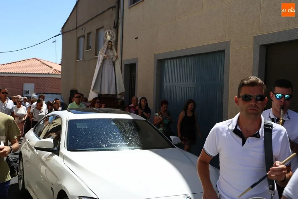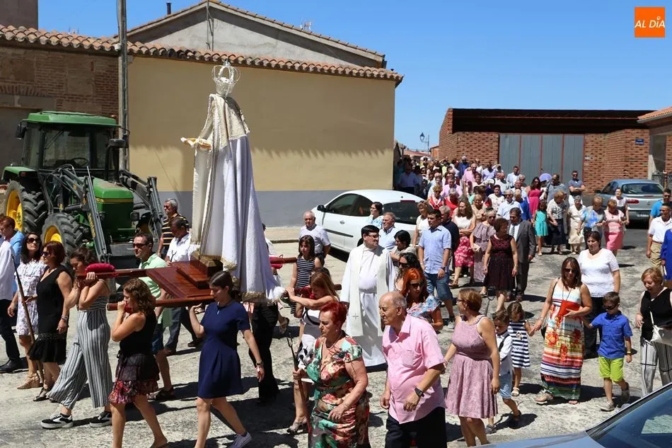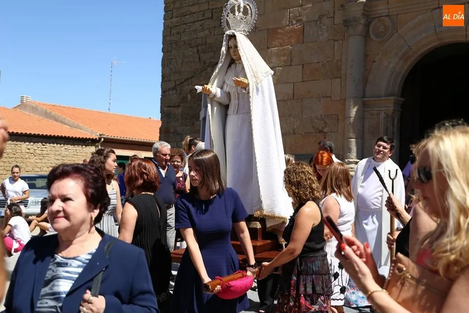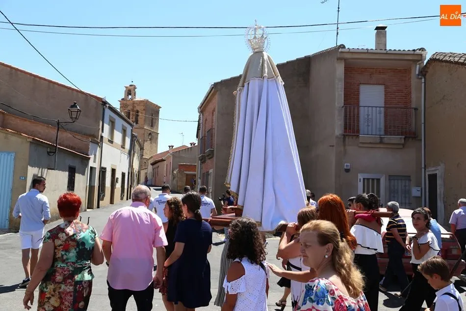 Tras la misa, los cantalpineses salieron en procesión por las calles del pueblo con la imagen de la Virgen, portada a hombros por mujeres del pueblo. En la plaza, el séquito hizo un alto en el camino para que varias vecinas bailasen la jota tocada por la charanga Los Tocacharros. A continuación, la procesión continuó hasta regresar al interior del templo cantalpinés.