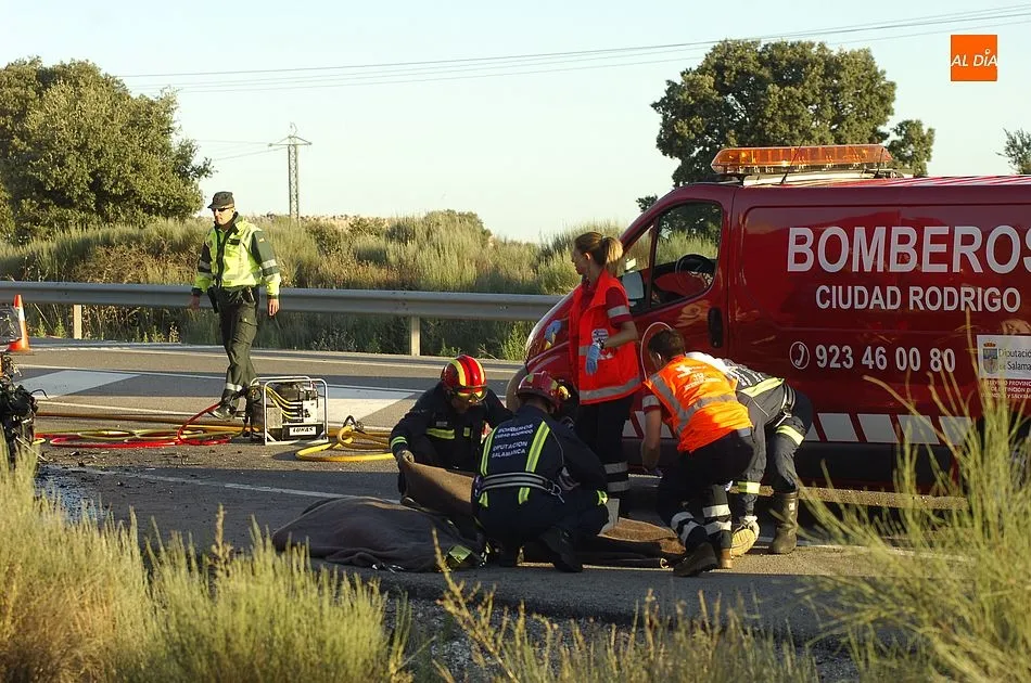 Hasta el lugar de los hechos también acudieron efectivos de la Guardia Civil para controlar el tráfico (el accidente obligó a cortar un carril de la calzada). Este accidente es el primero de lo que va de 2018 con víctimas mortales en la comarca de Ciudad Rodrigo.