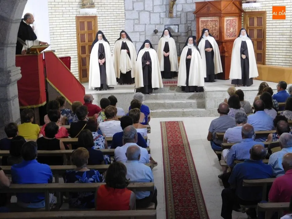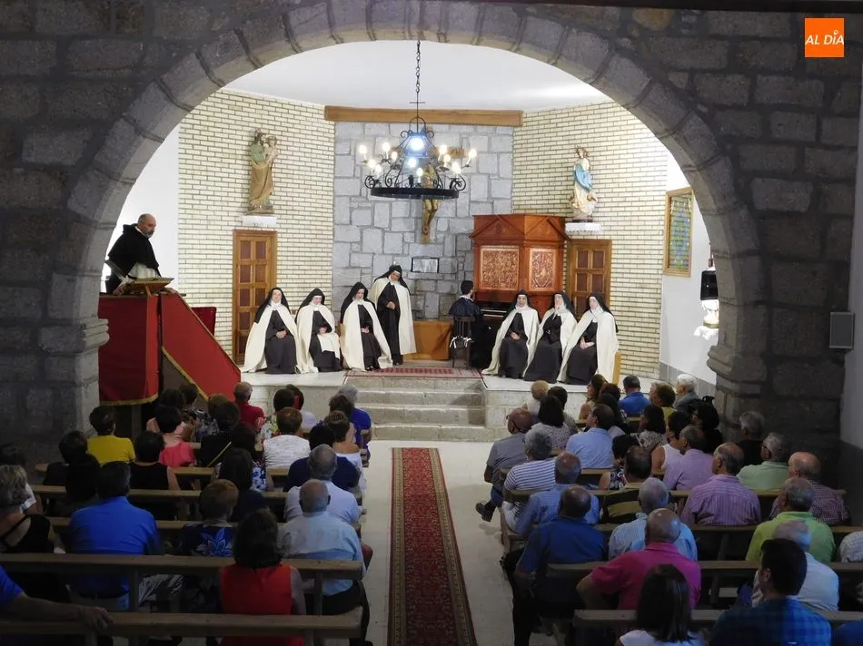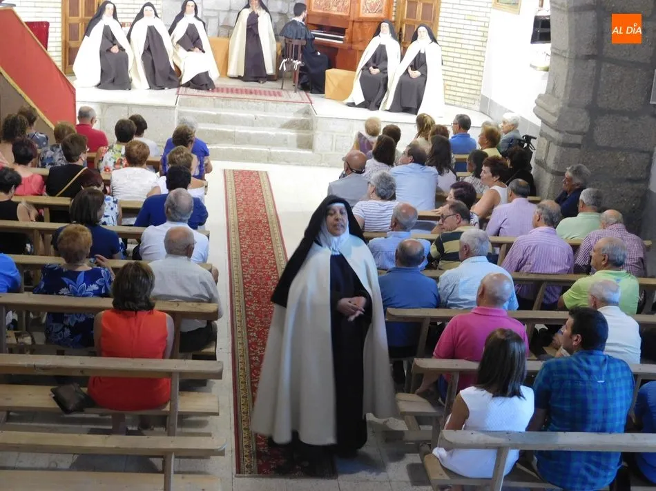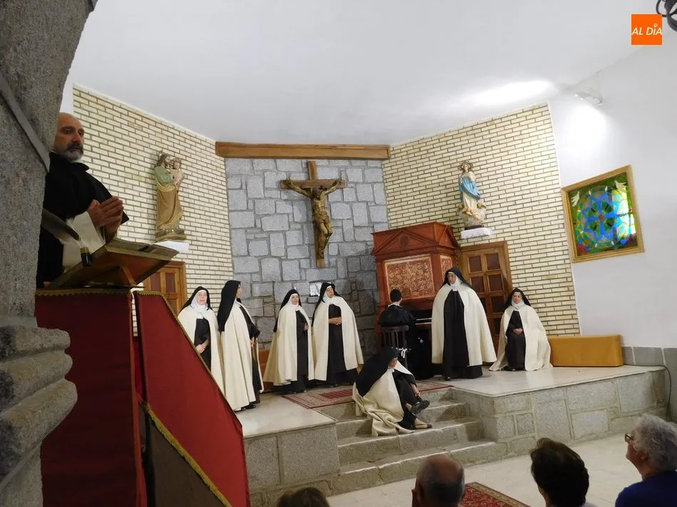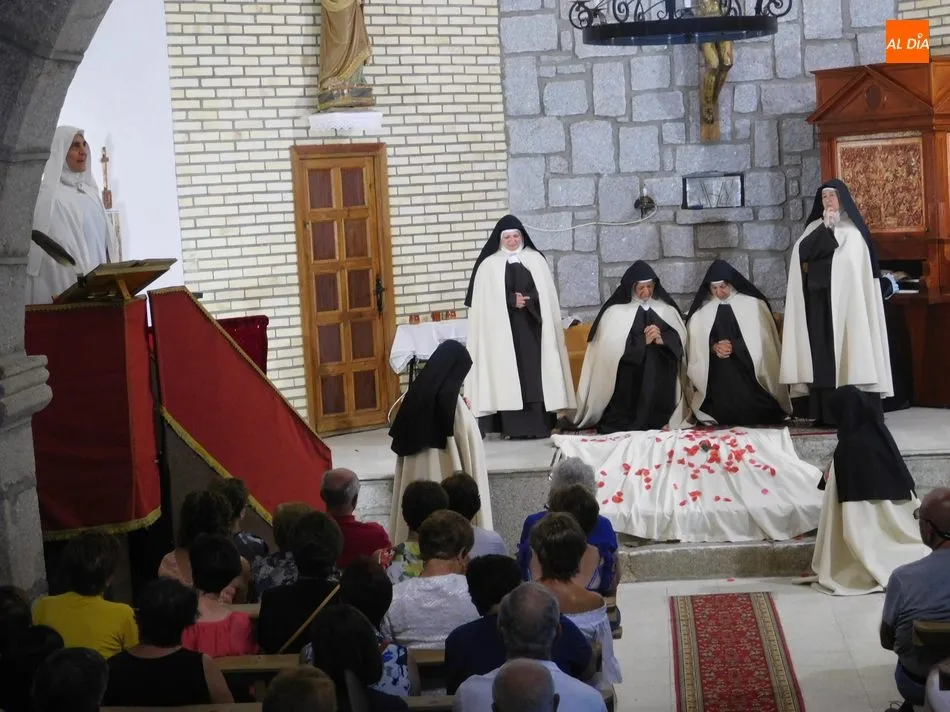 Los vecinos de san Domingo tienen la curiosa costumbre de marcar a sus animales con el escudo de su localidad para evitar pérdidas y confusiones. La seña de identidad que convierte en únicas a las actrices que encarnan a las hermanas de Teresa, son unos rudos y sencillos hábitos, que a la luz de la fuerte personalidad, rica en cualquier faceta que de su madre nos presentan, parecen la seña que significa la libertad, valentía, espiritualidad por encima de lo superficial, y una elección de vida que da sentido a la humanidad de cualquier hombre. El que aparece subido al púlpito, a pesar de la altura desde la que se impone, y con una oratoria que impresiona, con la buena formación de la Orden a la que pertenece, ayuda a entender cómo la vida de una mujer, da valor a las palabras por ella vividas y no escritas en el libro del cerrado hermetismo. Abiertos sin embargo fueron una vez más los aplausos de unas gentes entre los acordes del órgano en el que interpreta música renacentista durante todo el montaje las manos de otro maestro, Salinas, y que para Teresa de Jesús fue el último fogonazo de luz en esta calurosa tarde de agosto.