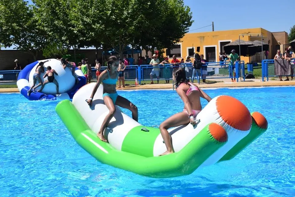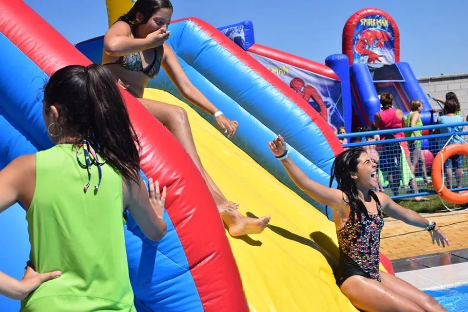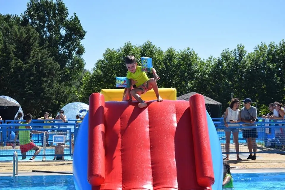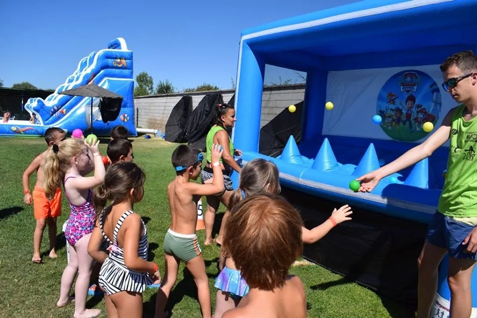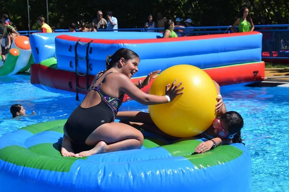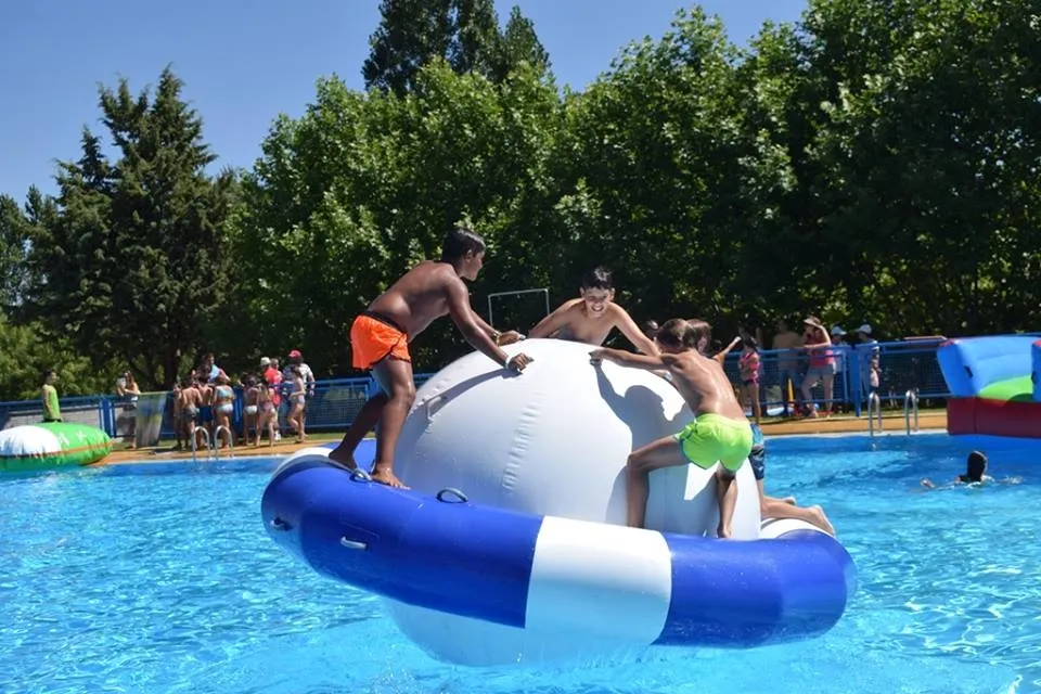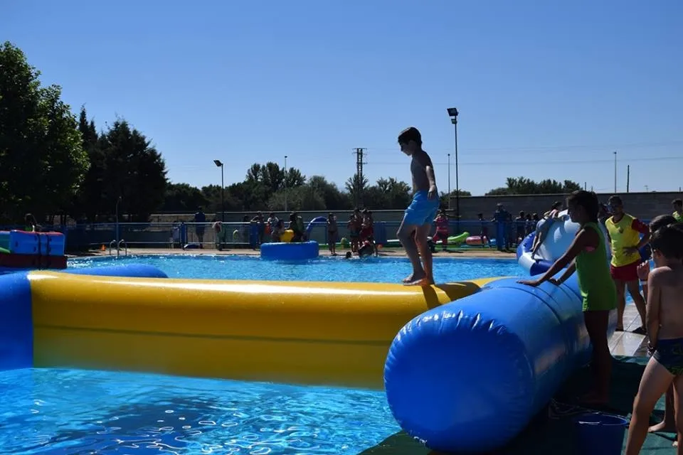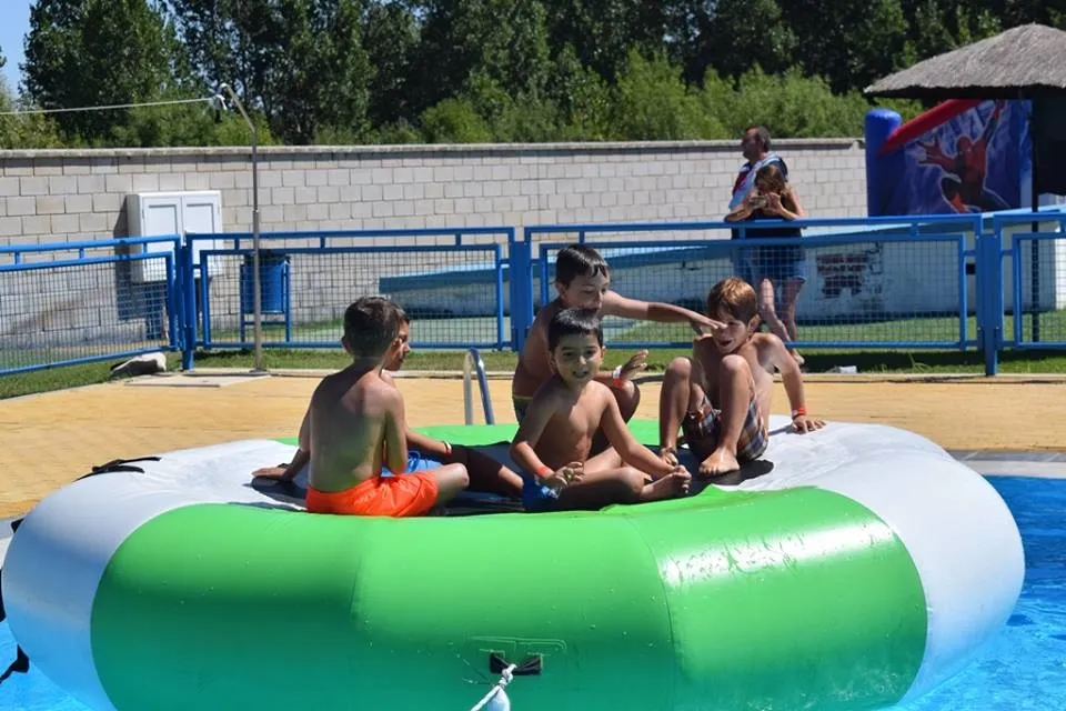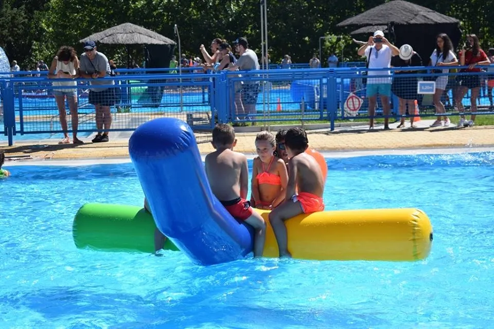 Los Juegos de la Piscina congregaron este año a 180 niños de entre 4 y 13 años, que pudieron realizar dos circuitos de juegos en función de su edad: el llamado circuito rojo para niños de 4 a 8 años, y el azul para niños de 9 a 13 años. En esos circuitos había repartidos elementos como Slider City, resbaladora, bolas de agua, el hinchable Saturno, Spiderman, toboganes, balancines y pasarelas acuáticas, o una cama elástica.